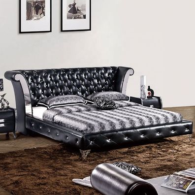 Edelstahl Luxus Chesterfield Leder Bett Doppel Polster Designer Betten Hotel