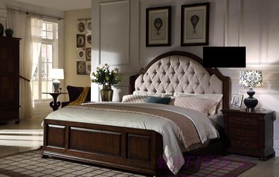 Designer Doppelbett Bett Betten Leder Chesterfield Echtholz Luxus Schlafzimmer