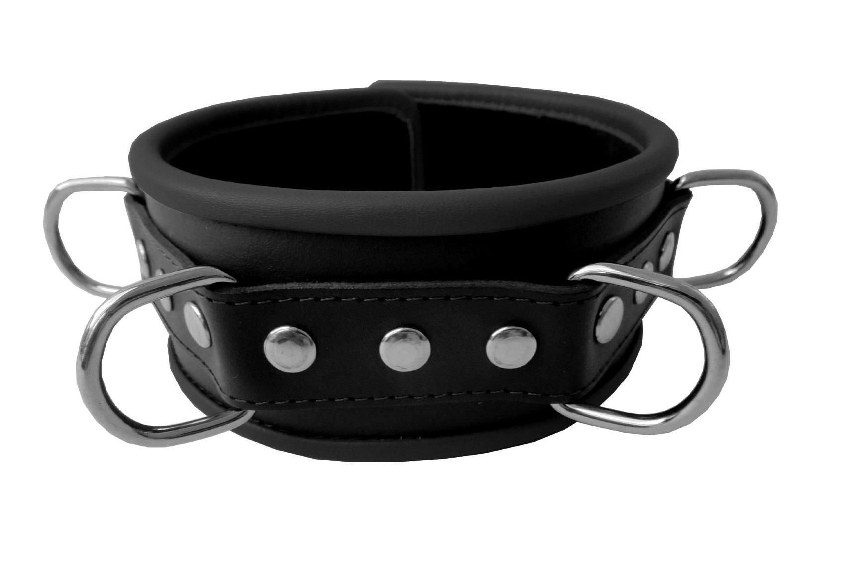 Leder Bondage Halsband gepolstert mit 4 Ringe schwarz