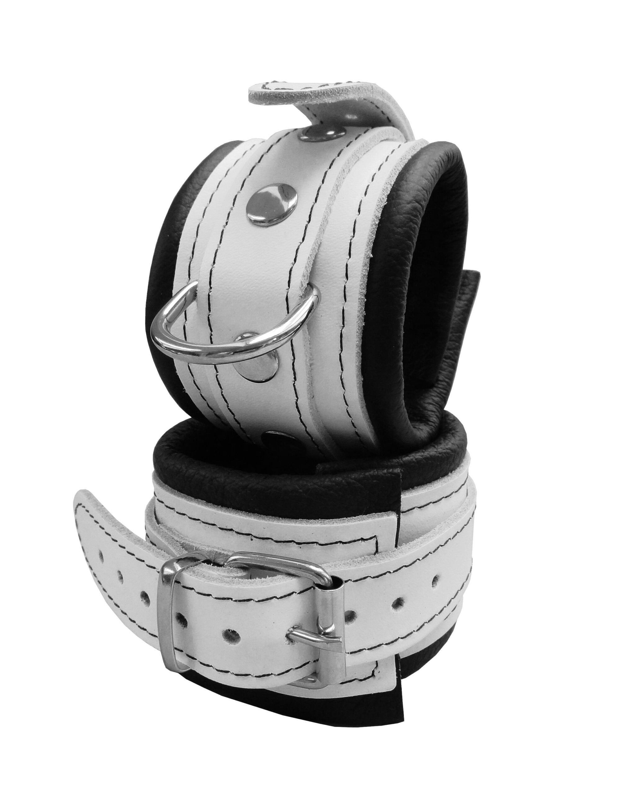 Leder Bondage Handfesseln gepolstert weiß