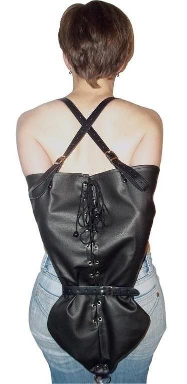 In schwarz. Länge: 52cm. Aus veganem Kunstleder. Schnallen mehrfach verstellbar. Hinten mit Schnürung für den optimalen Sitz. Unsere hochwertigen Leder Bondage Fesseln entführen Sie in eine neue Welt der Fesselkunst. Höchste Qualität und unsere niedrige Preise werden Sie begeistern.