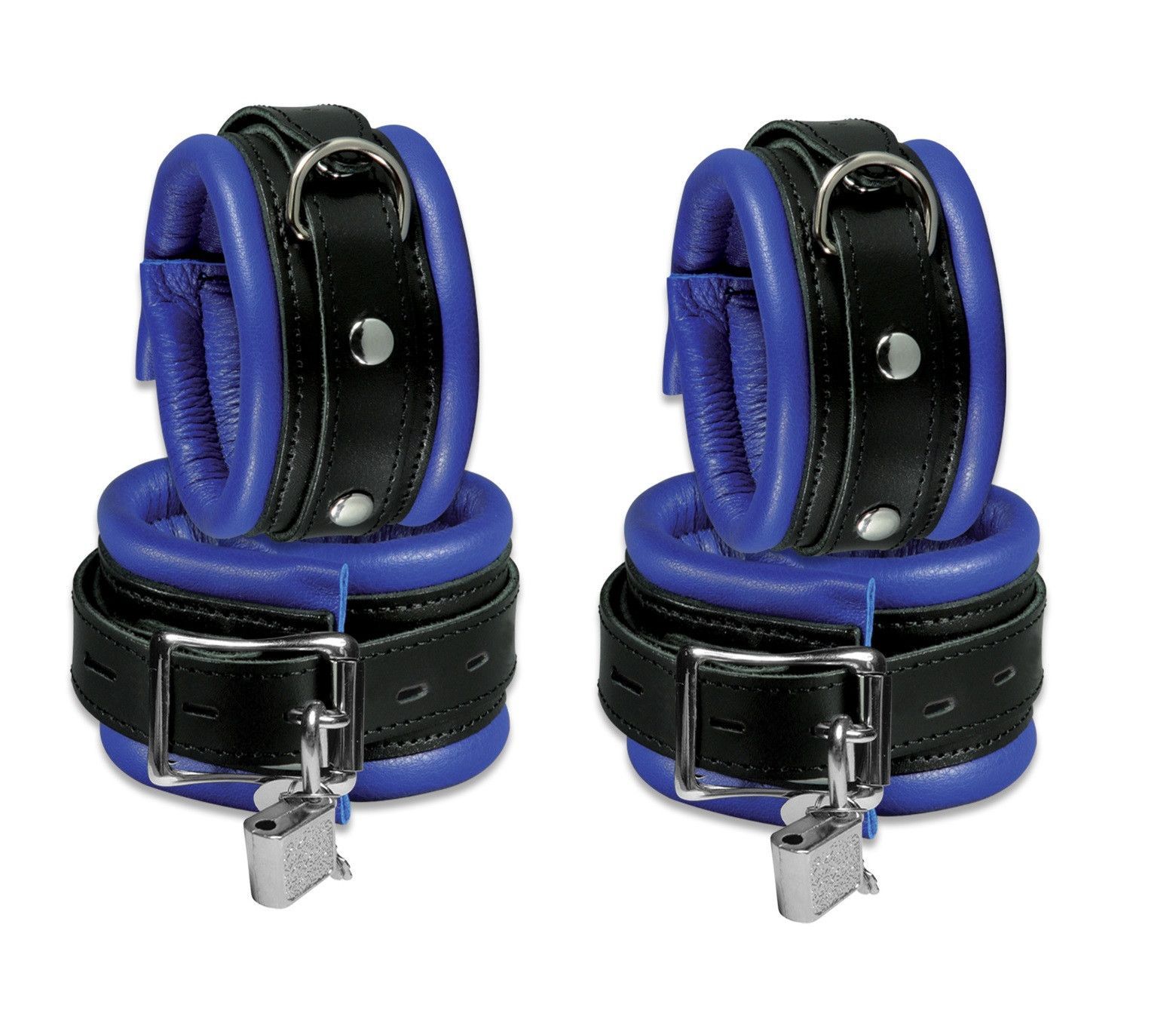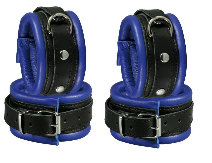 Mit D-Ring. Farbe: Blau. Material: Rindsleder. Inkl. 2 Doppelkarabiner. Innen mit weichem Nappaleder gepolstert. Maße: Fußfesseln: Länge Polster: 29cm. Breite: 5,0cm. Handfesseln: Länge Polster: 21cm. Breite: 5,0cm. Unsere Leder Bondage Sets werden Sie begeistern. Die Fesselsets bieten Ihnen höchste