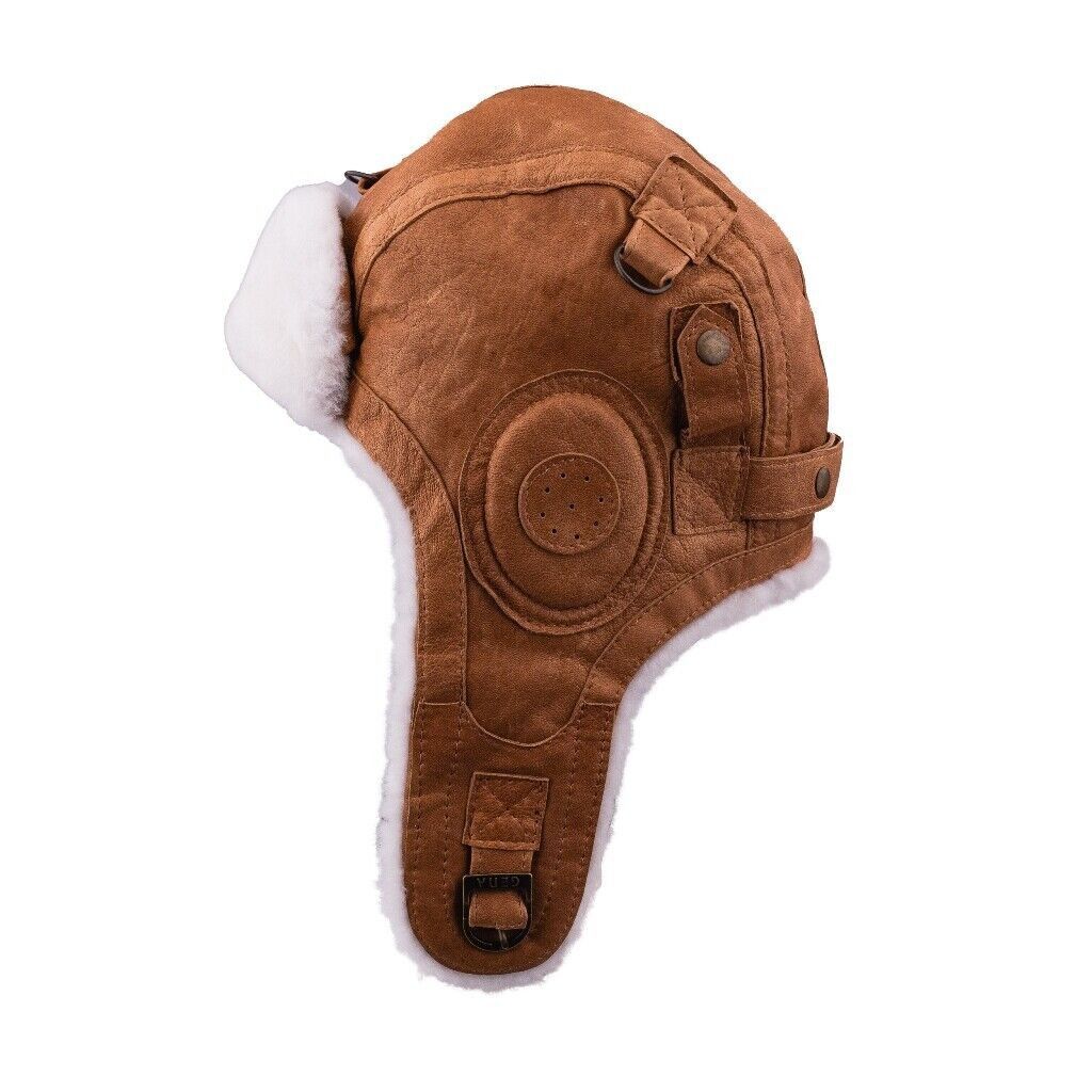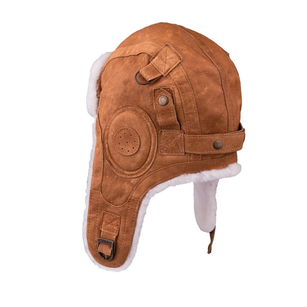 Leder Cabriomütze Pilotenmütze Ledermütze Fellmütze Fell Trapper Leather Cap