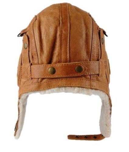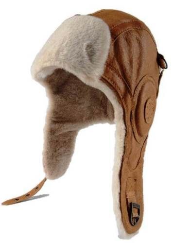 Leder Cabriomütze Pilotenmütze Ledermütze Fellmütze Fell Trapper Leather Cap 054