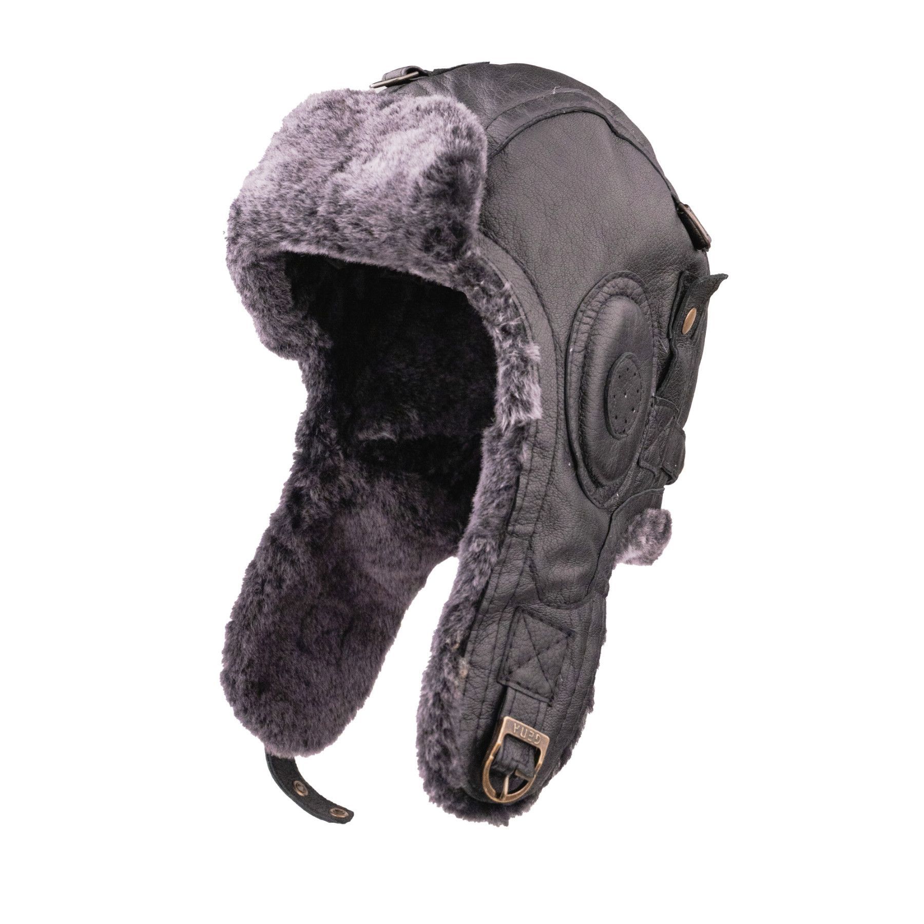 Leder Cabriomütze Pilotenmütze Ledermütze Fellmütze Fell Trapper Leather Cap 1
