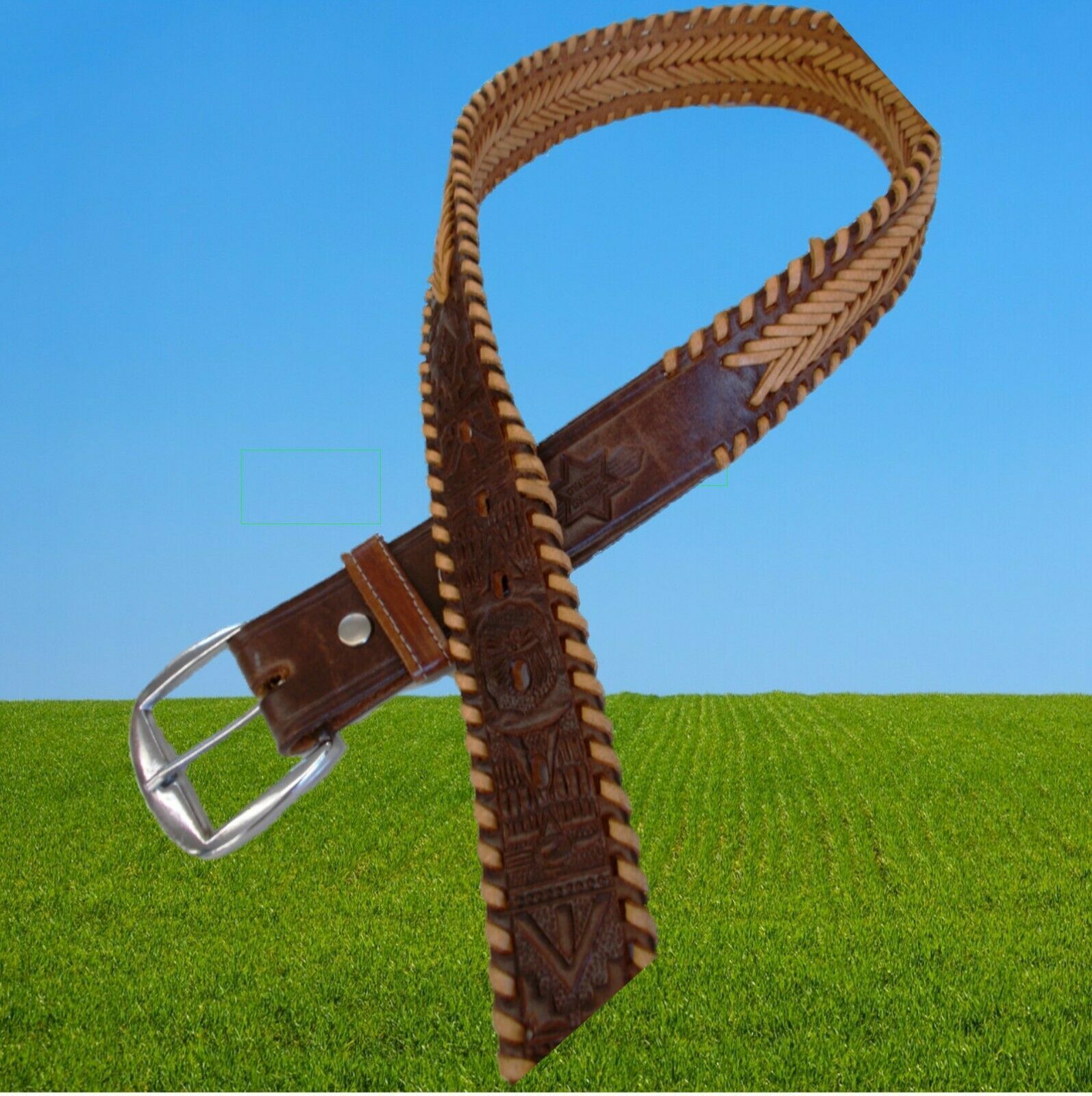Leder Gürtel geflochten, punzierter Gürtel von Stars & Stripes, Western Gürtel