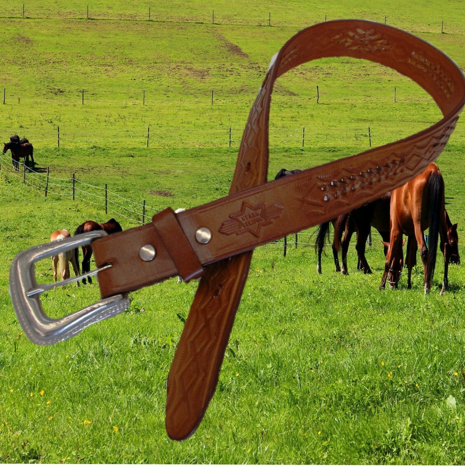 Leder Gürtel, punzierter Gürtel von Stars & Stripes, Western Gürtel