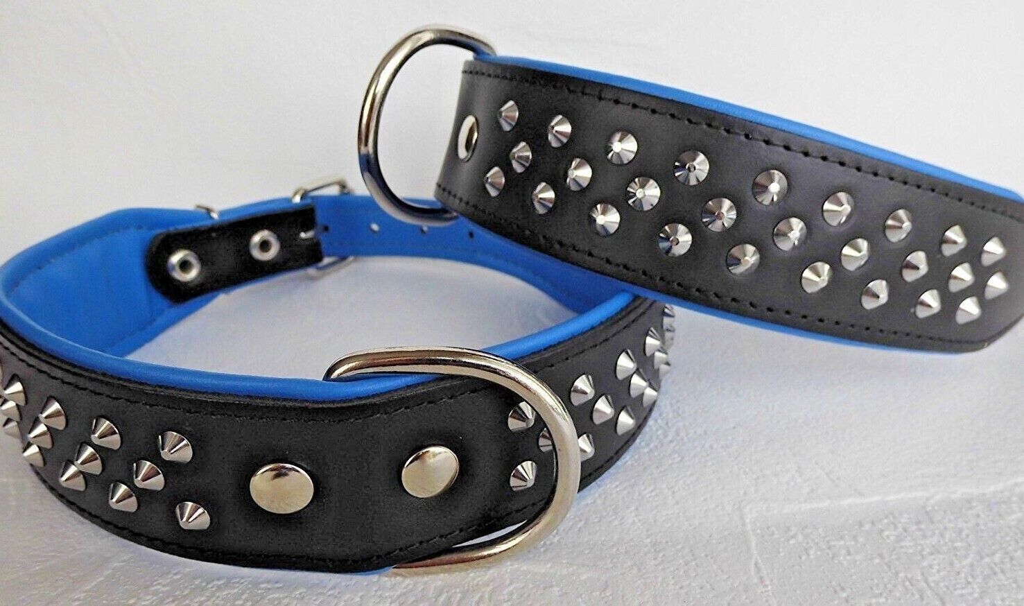 Lederhalsband mit Nieten Maße: Gesamtlänge : 57 cm Halsumfang : 44 - 51 cm Breit : 40 mm Messen Sie hierzu bitte den Hals ihres Hundes. Material : - 100 % hochwertiges Leder, sehr robust - verziert mit runden Kopfnieten - vernäht und gepolstert mit weichem Leder Bitte beachten Sie auch andere Angebo
