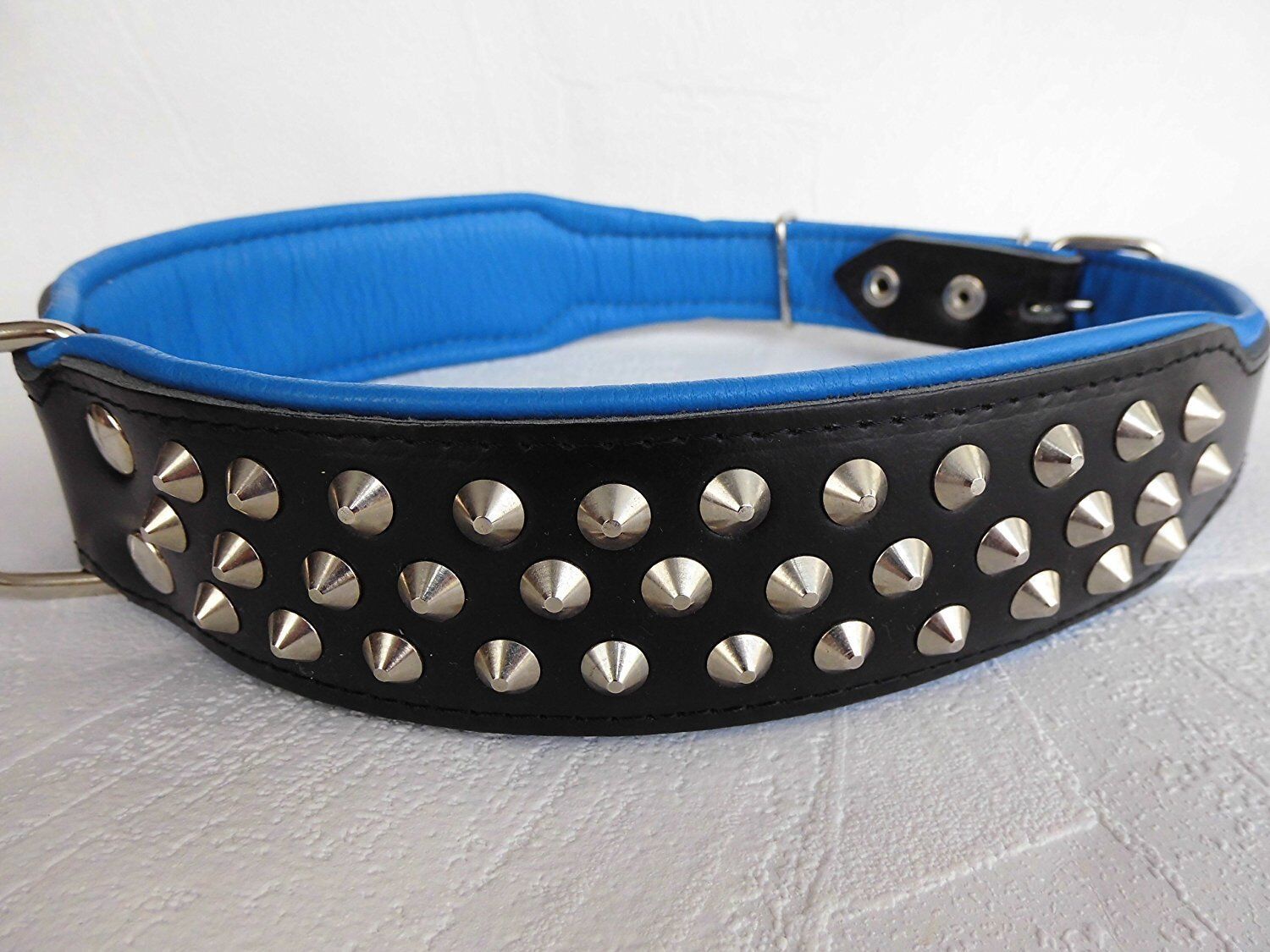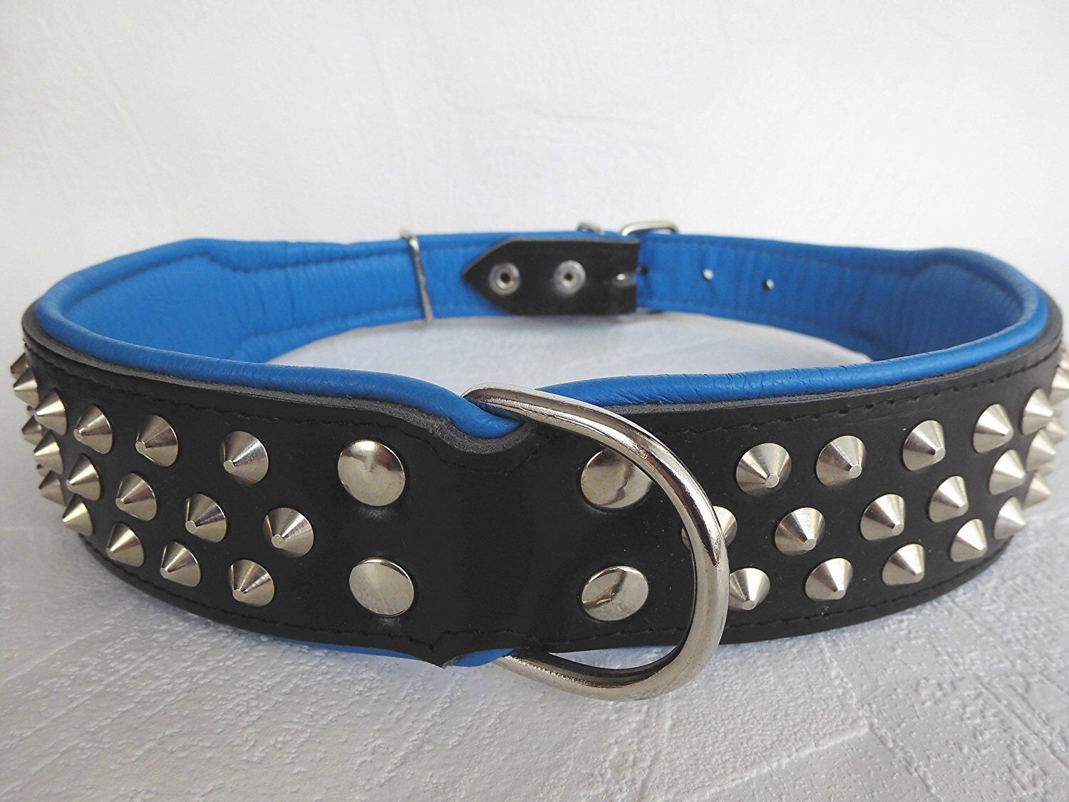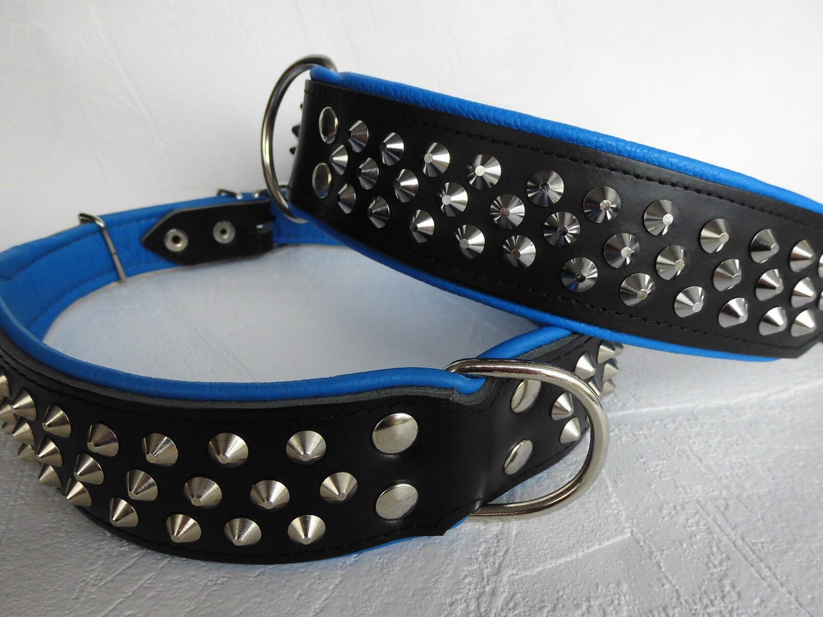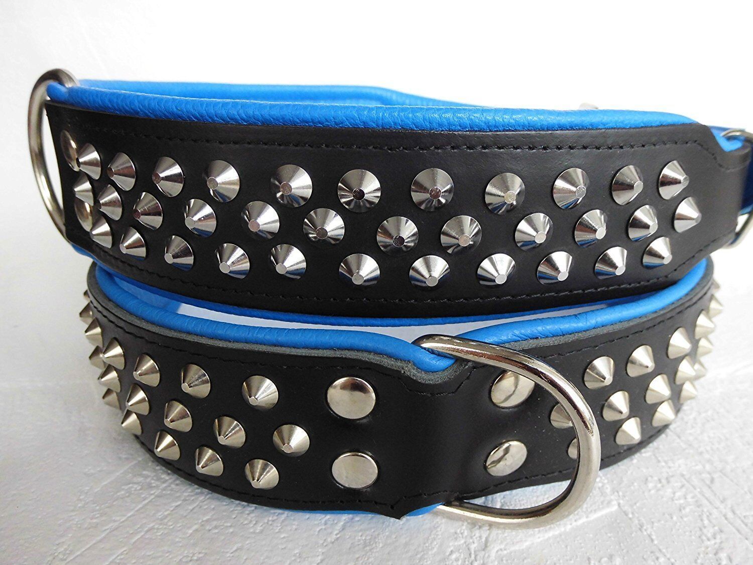 Lederhalsband mit Nieten Maße: Gesamtlänge : 80 cm Halsumfang : 61-72 cm Breit : 50 mm Messen Sie hierzu bitte den Hals ihres Hundes. Material : - 100 % hochwertiges Leder, sehr robust - verziert mit runden Kopfnieten - vernäht und gepolstert mit weichem Leder Bitte beachten Sie auch andere Angebote