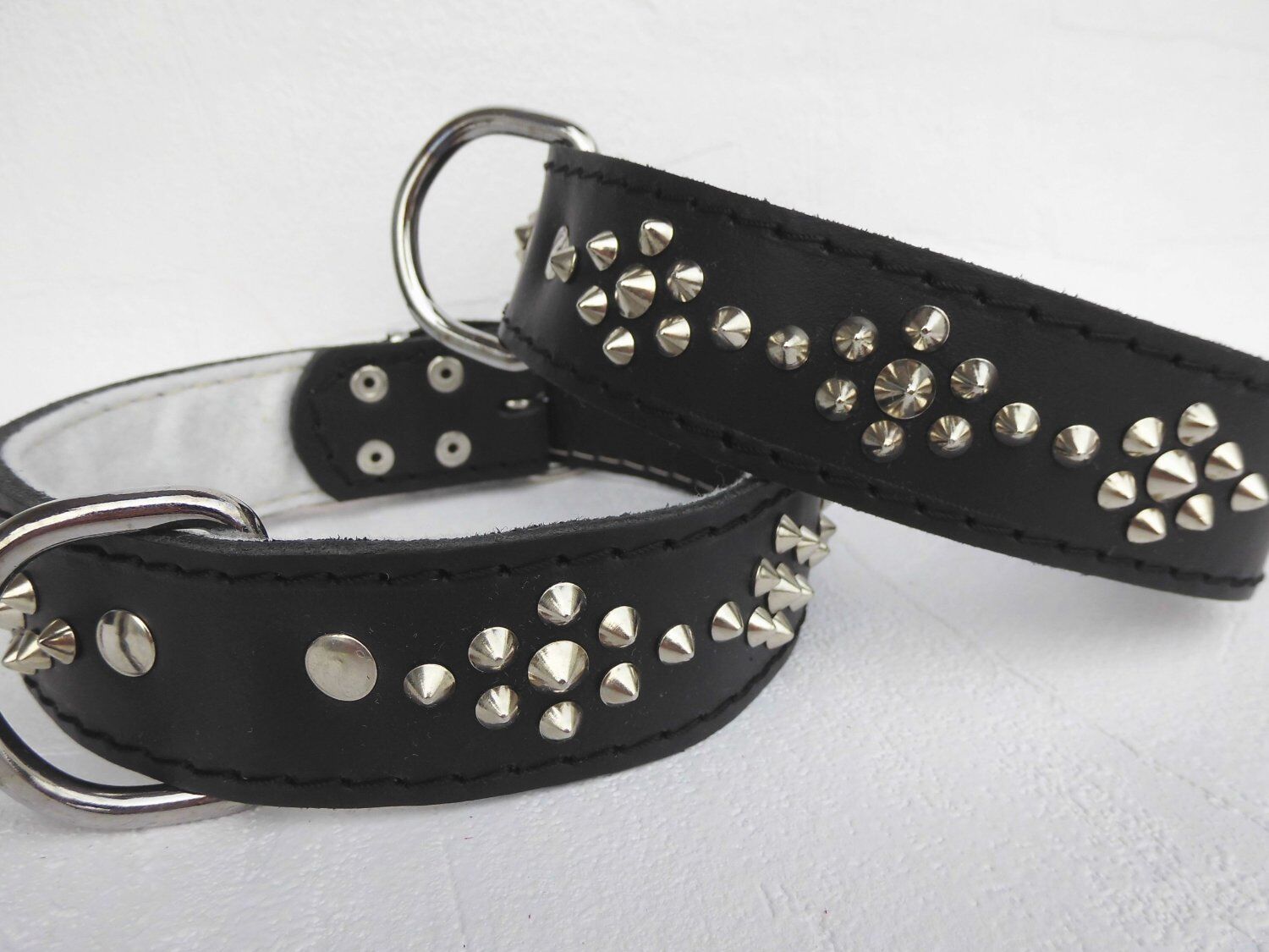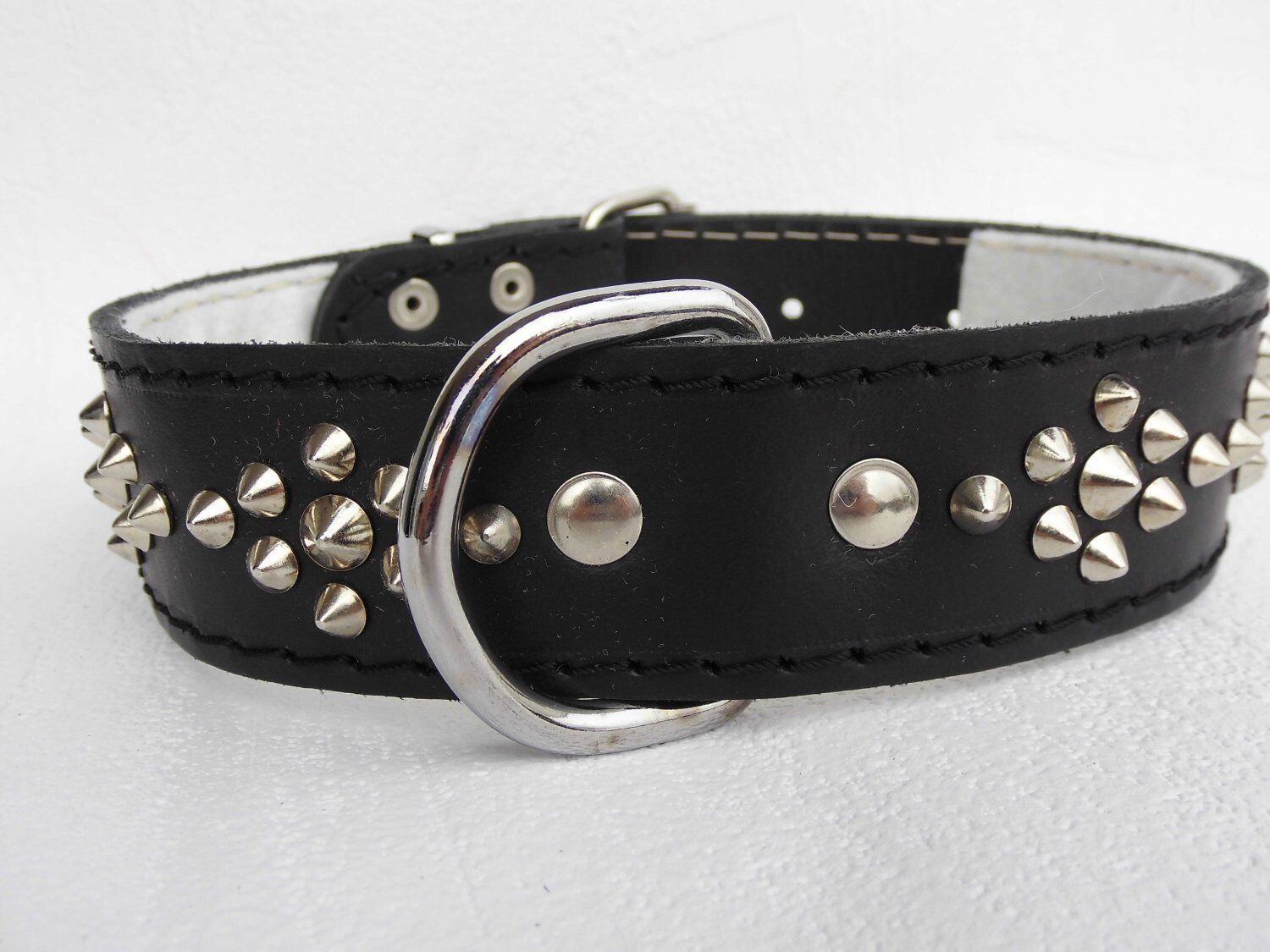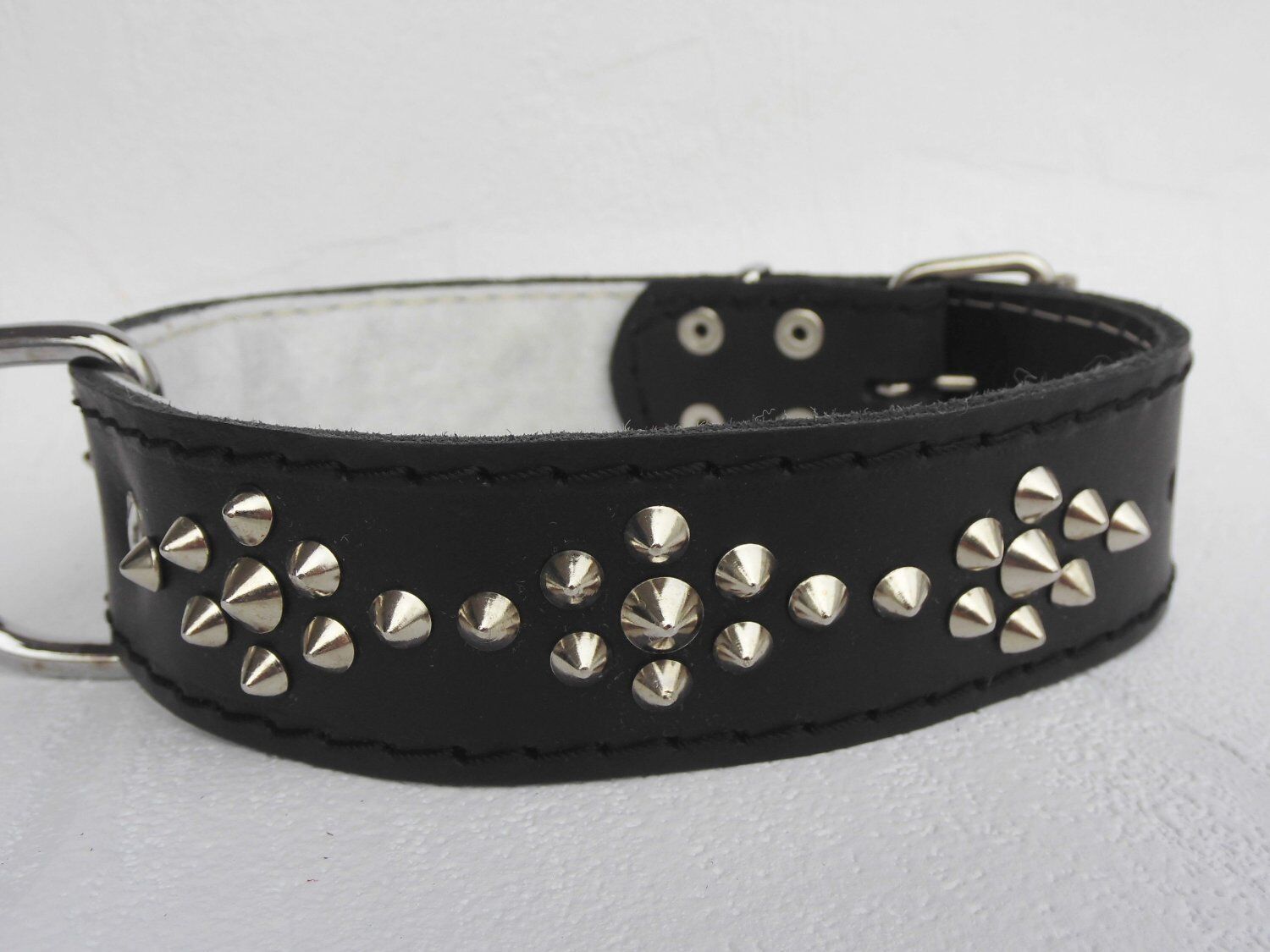 Lederhalsband mit Nieten *** SCHWARZ *** Maße: Gesamtlänge : 73 cm Halsumfang : 51- 65 cm Breit : 40 mm Messen Sie hierzu bitte den Hals ihres Hundes. Material : - 100 % hochwertiges Echt Voll Leder, sehr robust - SCHWARZ, verziert mit runden Kopfnieten - vernäht und gepolstert mit weichem Futtersto