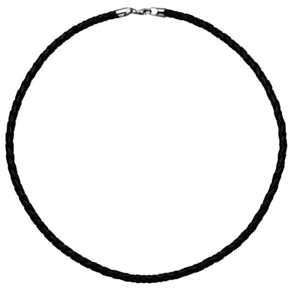 • Collier Halskette Leder mit Edelstahl und Kautschuk 45 cm Lederkette