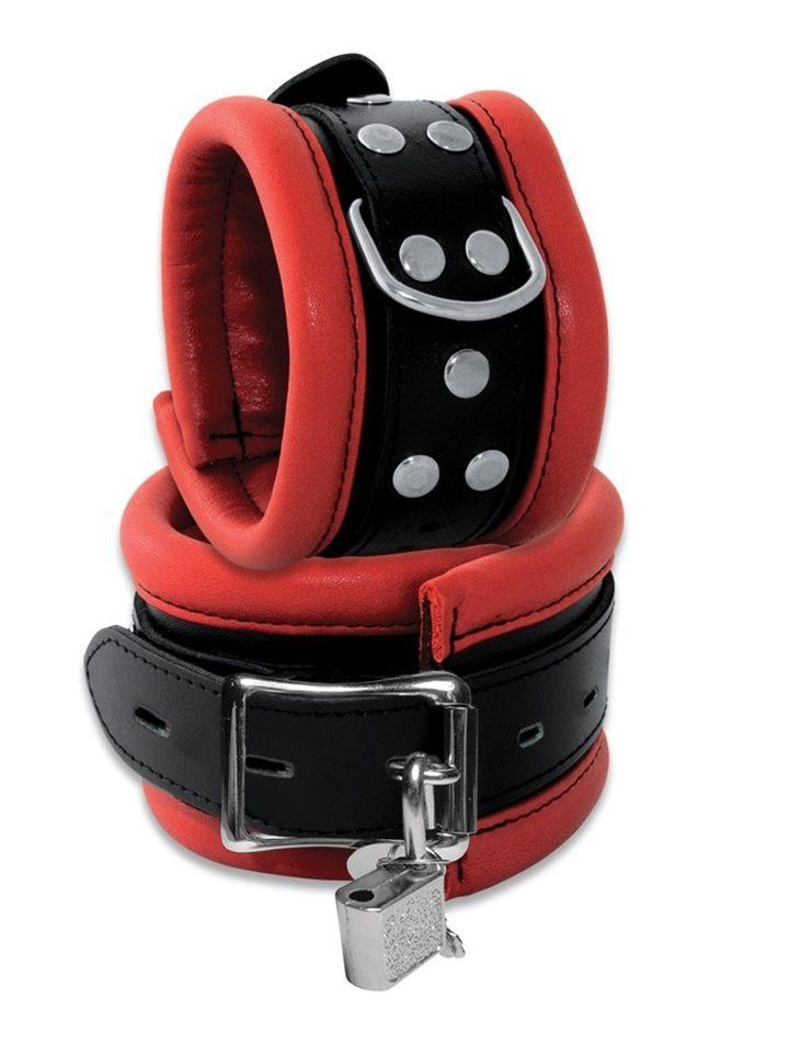 Leder HQ Bondage Fußfesseln gepolstert rot