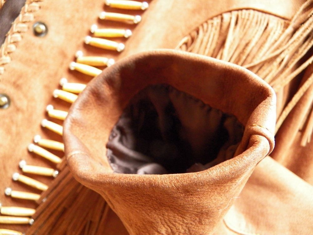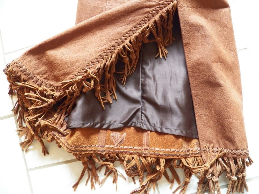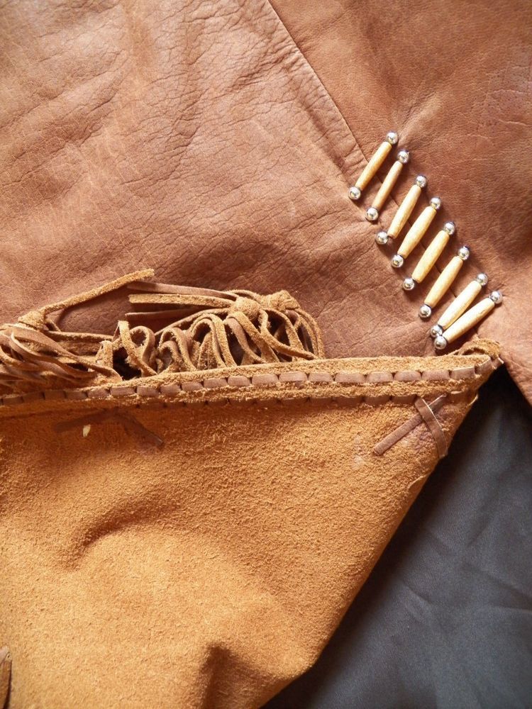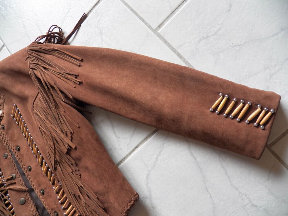 Material: Hirschleder. Alle Knöpfe Truckknöpfe Die Gebrauchsspuren die auf den Fotos zu erkennen sind sind in Wirklichkeit kaum zu sehen, außer die am Kragen. Jacke: Armlänge unter der Achsel gemessen 40 cm; Brustweite einfach gemessen 48 cm; Taille einfach gemessen 46 cm; Länge vorne 52 cm-hinten 4... Mehr