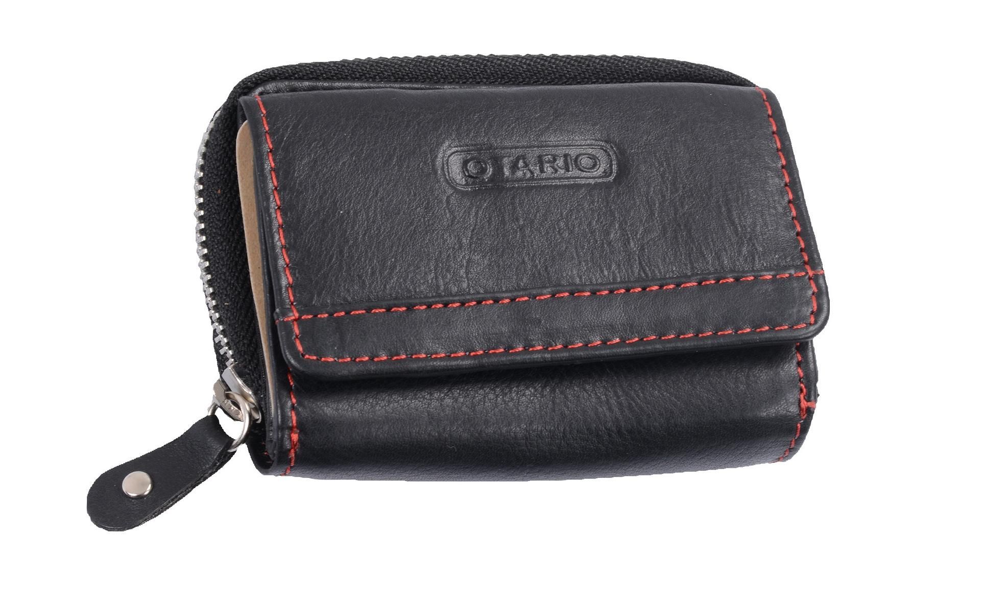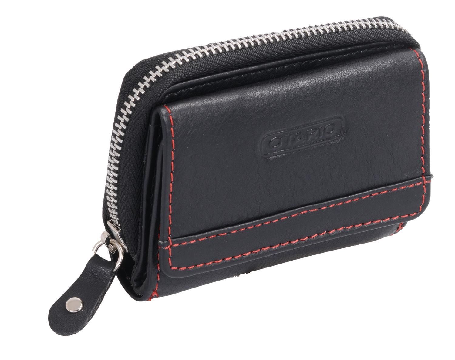 Leder Minibörse OTARIO schwarz rot Reißverschlussfach