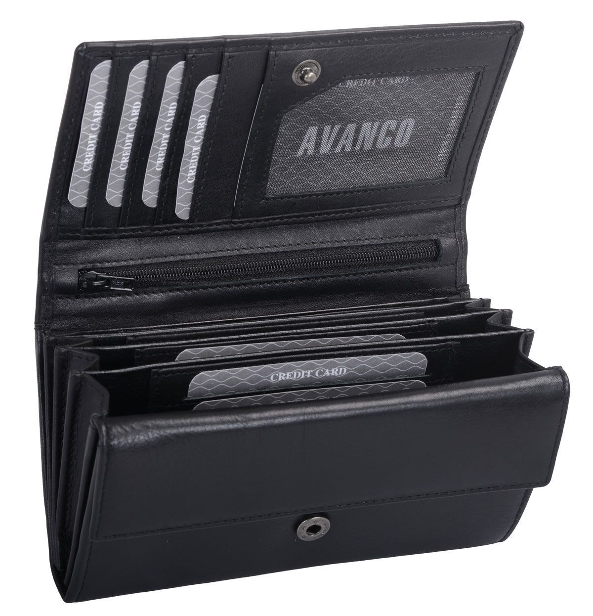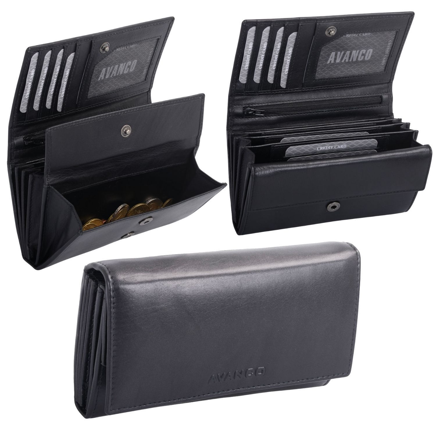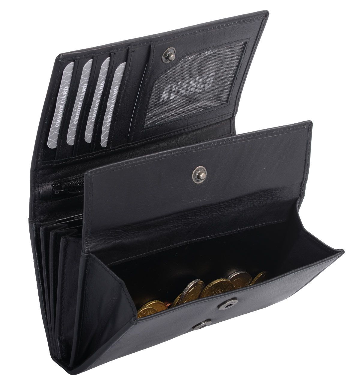 Leder Portemonnaie Damen schwarz groß – ohne Reißverschlusskleingeldfach