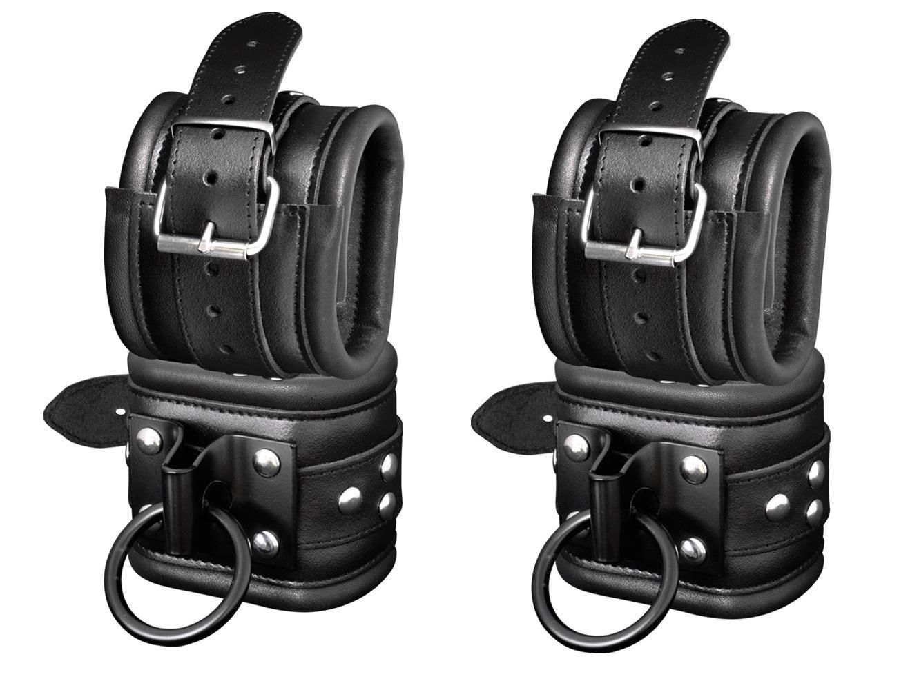Leder robustes Bondage Set Handfesseln Fußfesseln Fesselset gepolstert schwarz