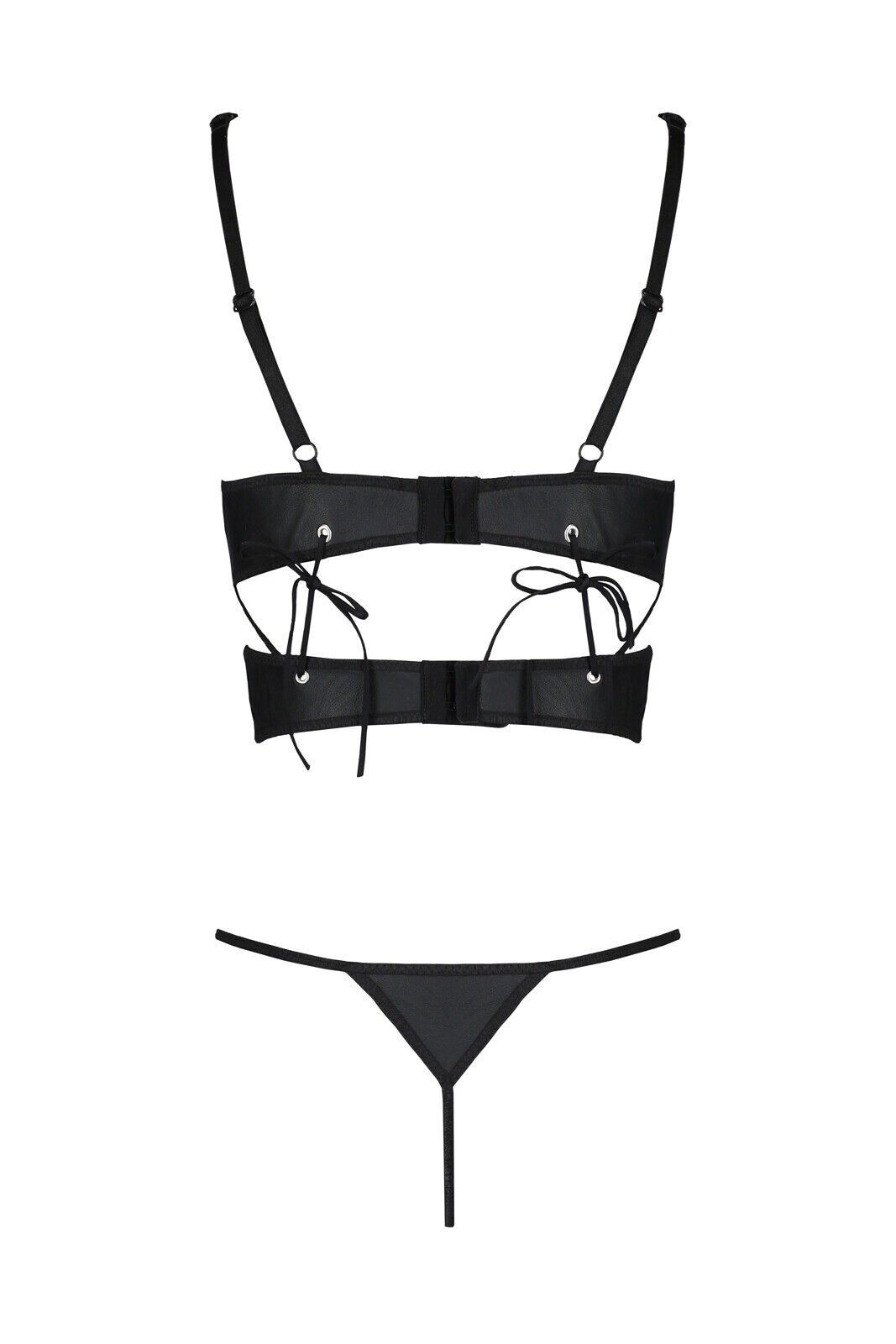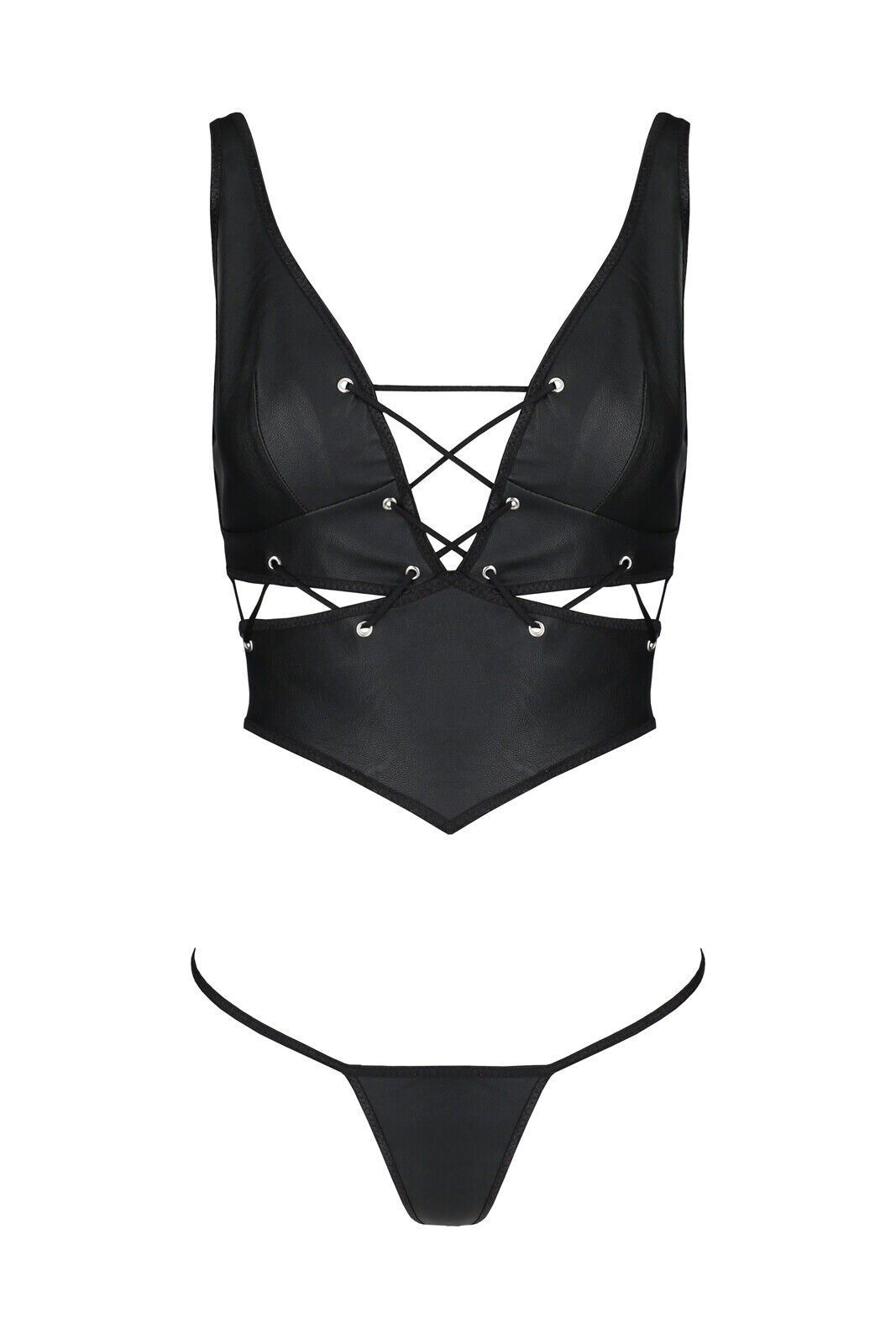 Leder Set Schwarz Heißes Bustier Top und String Gr. S/ M, L/ XL, 2XL/3XL