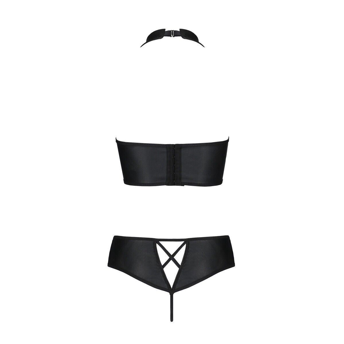 Leder Set Schwarz Rückenfreies Neckholder Top und String S/ M, L/ XL, 2XL/3XL
