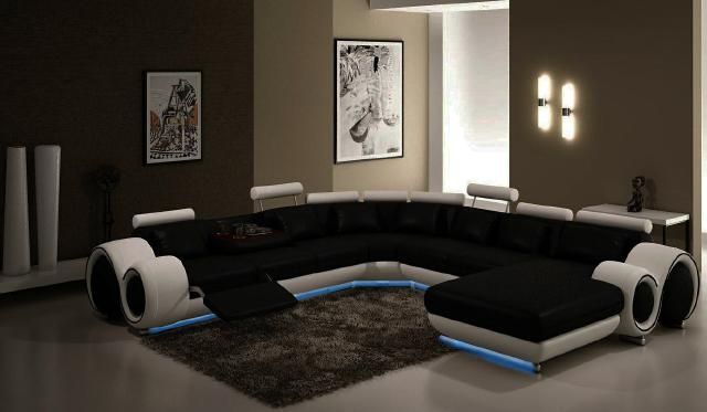 Leder Sofa Mit USB Couch XXL Wohnlandschaft Ledercouch Big Sofa Ecksofa
