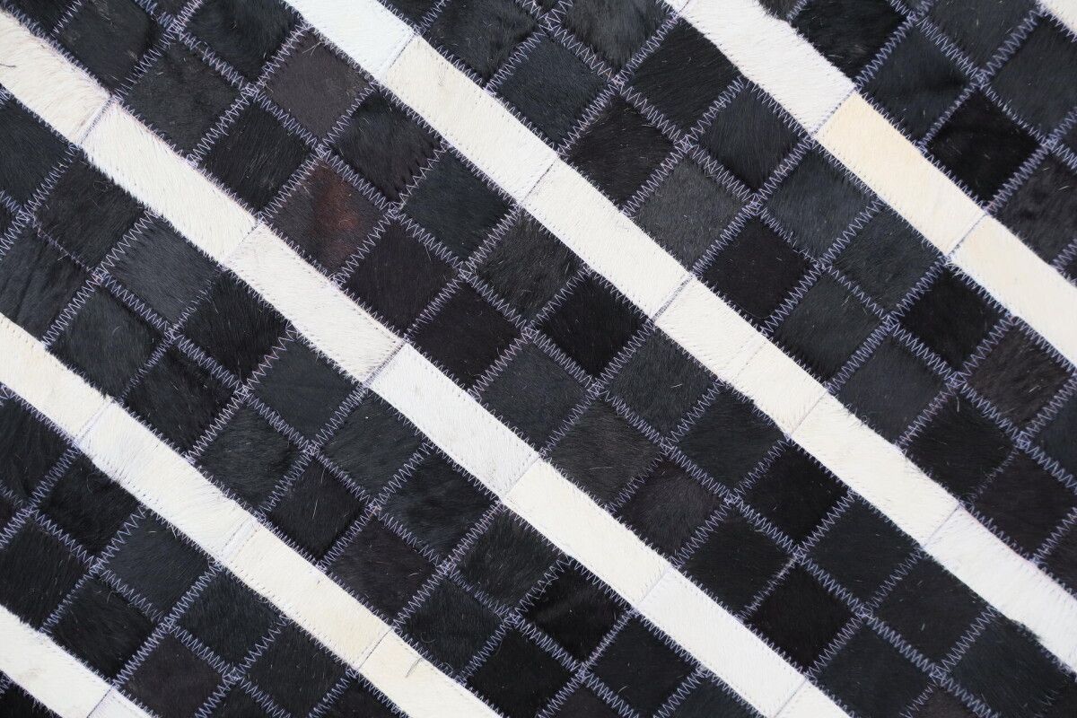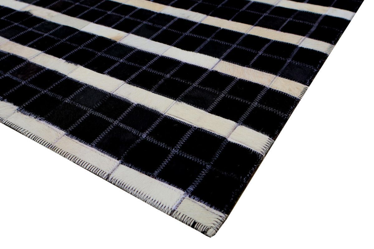 Leder Teppich Fellteppich 150x240 cm echtes Rinderfell Handmade schwarz weiß