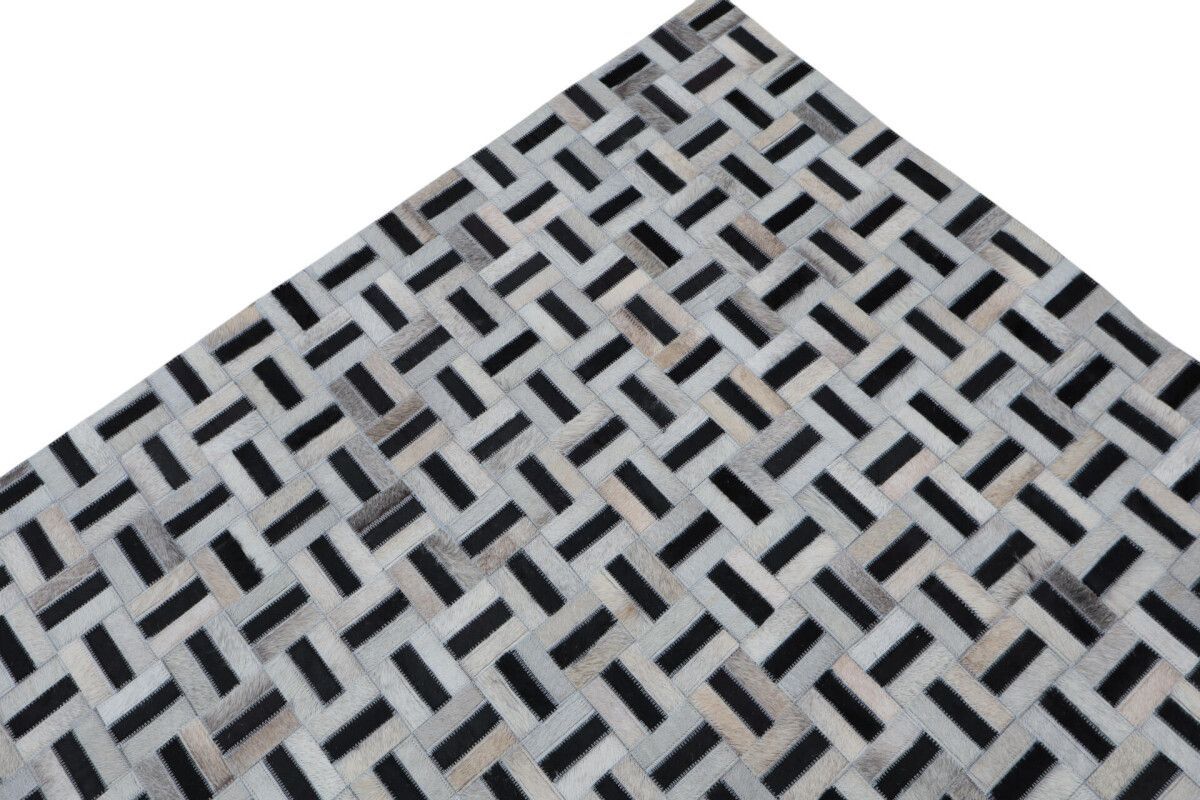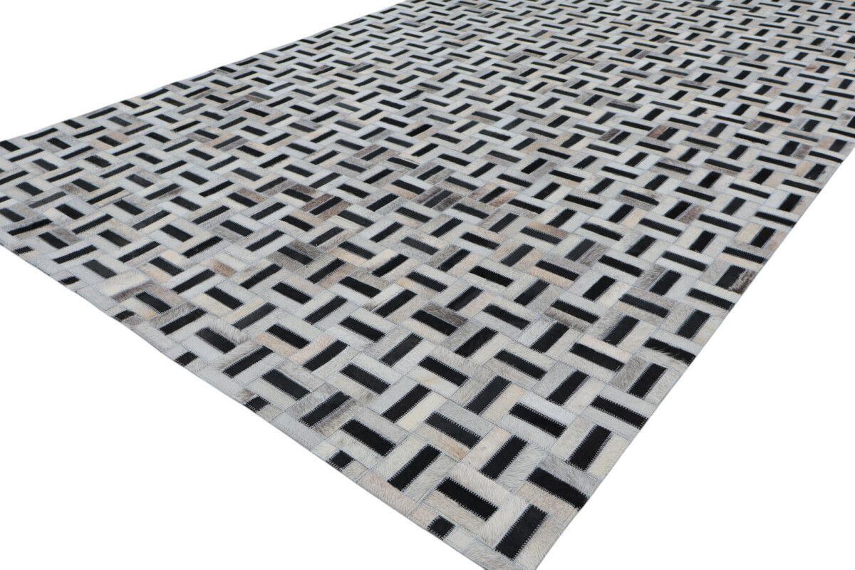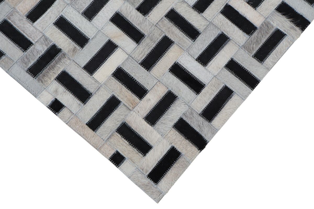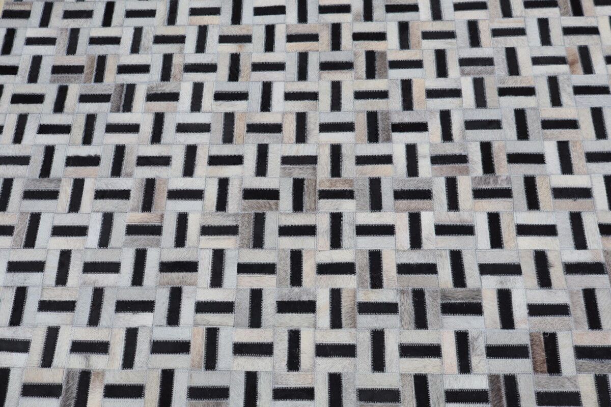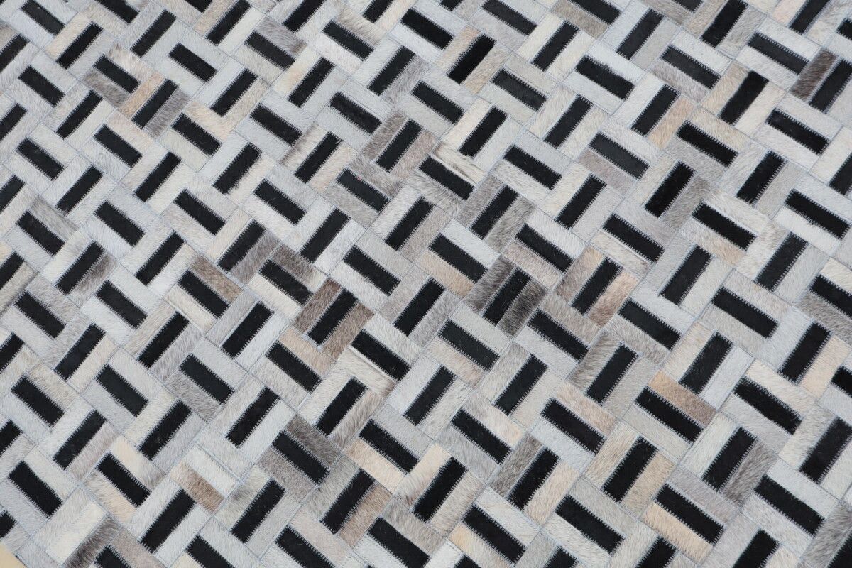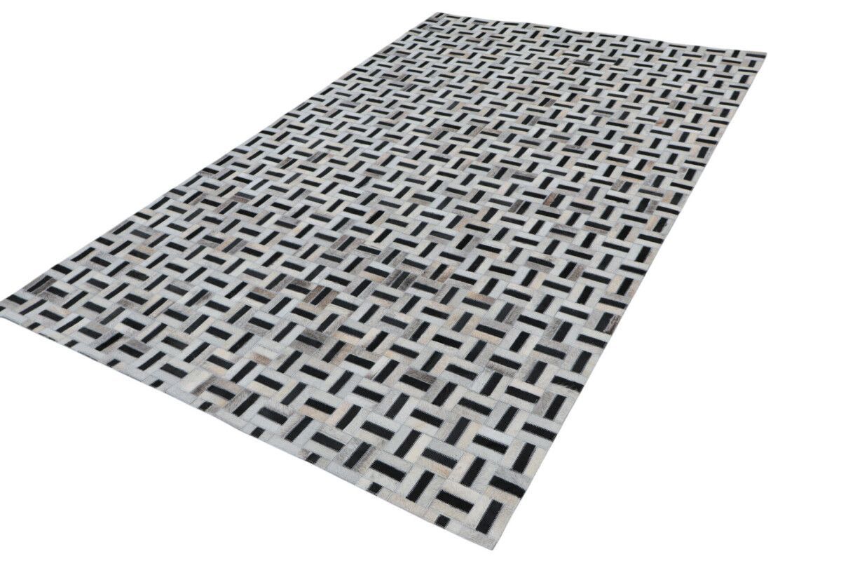 Leder Teppich Fellteppich Tappeto 150x240 cm Rinderfell Handmade schwarz beige