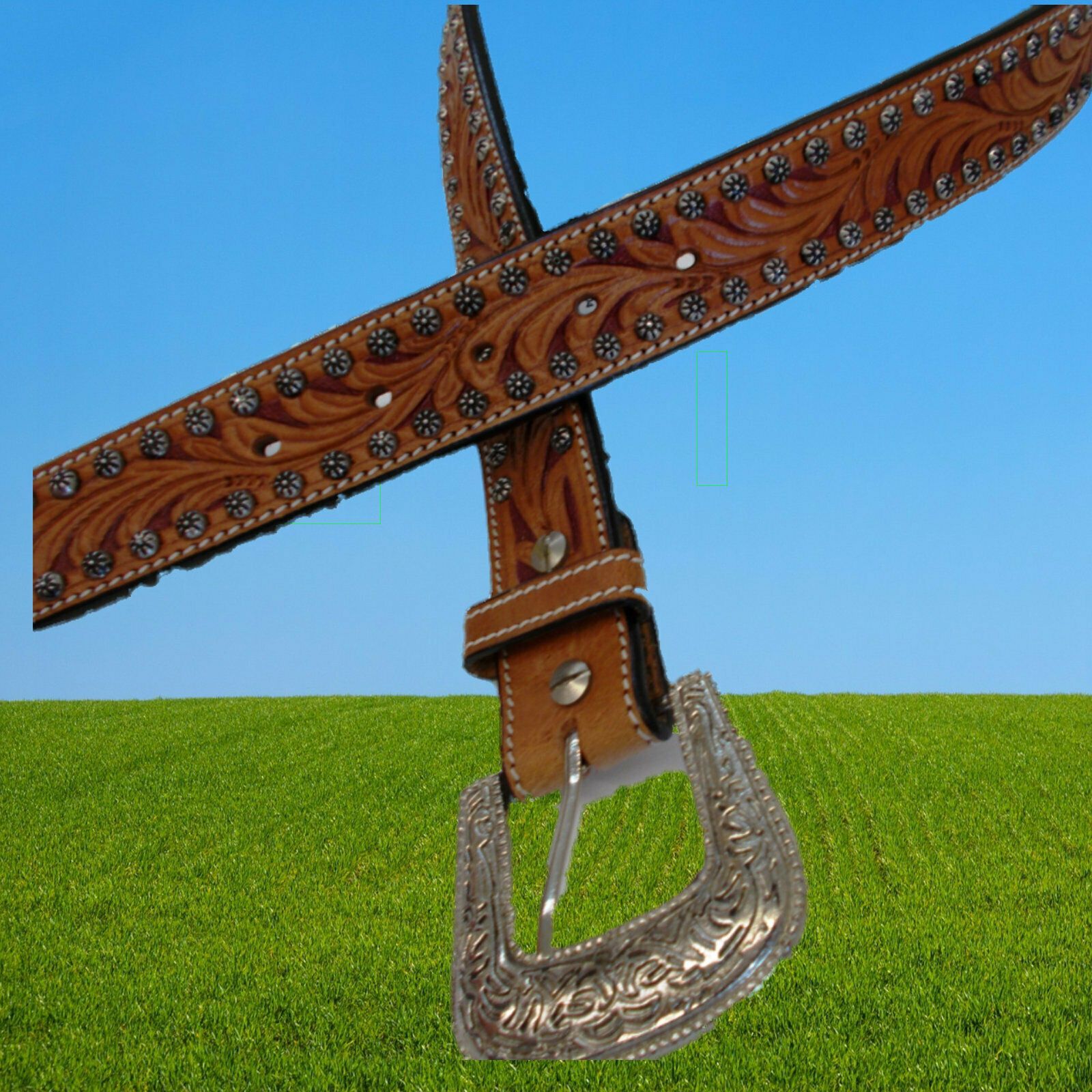 Leder Western Gürtel Euroriding, Western Belt, punziert, Dots mit Schnalle