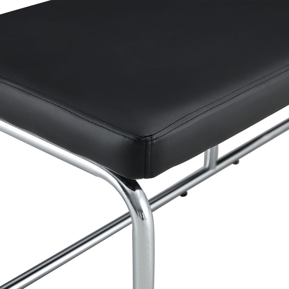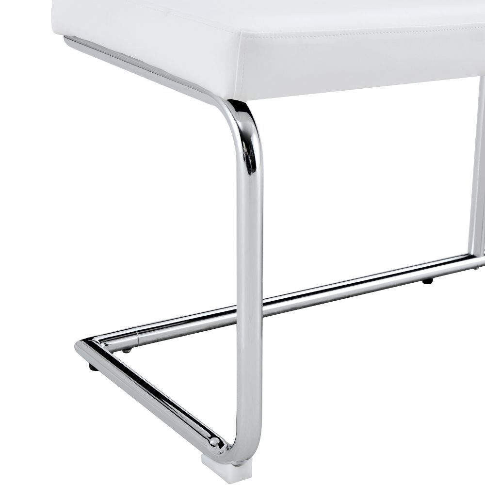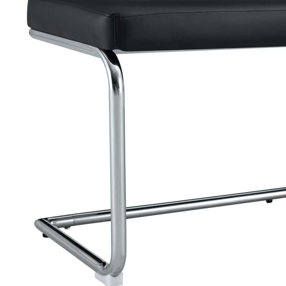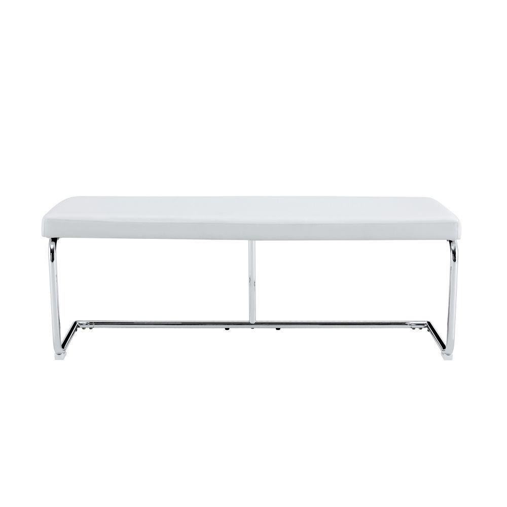 Moderne Sitzbank mit gepolsterter Oberfläche aus PU und stabilem Metallgestell in verchromter Optik. Ideal für Schlafzimmer, Flur oder Wohnbereich. Das elegante Design bringt Komfort und einen zeitgemäßen Stil in verschiedene Wohnräume.