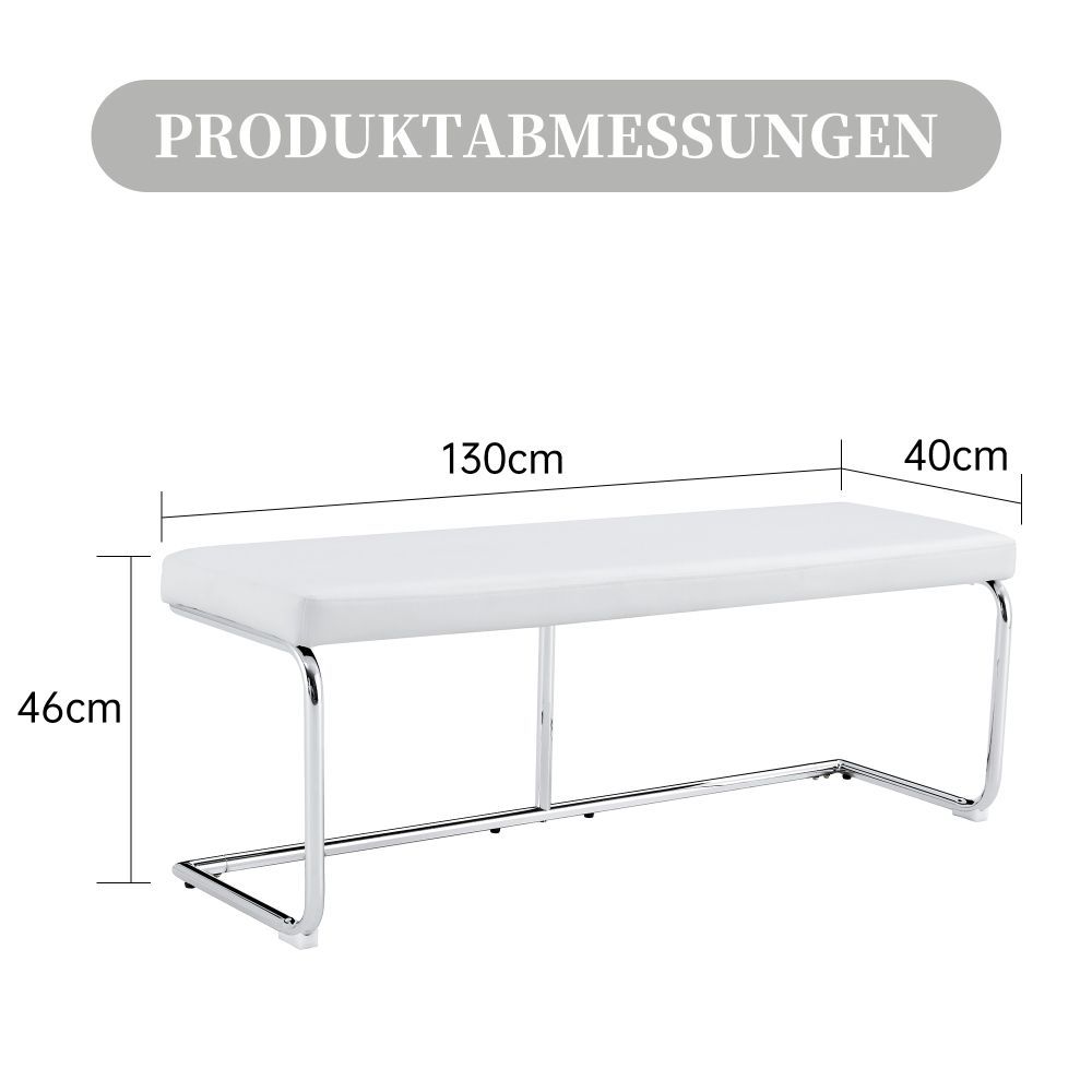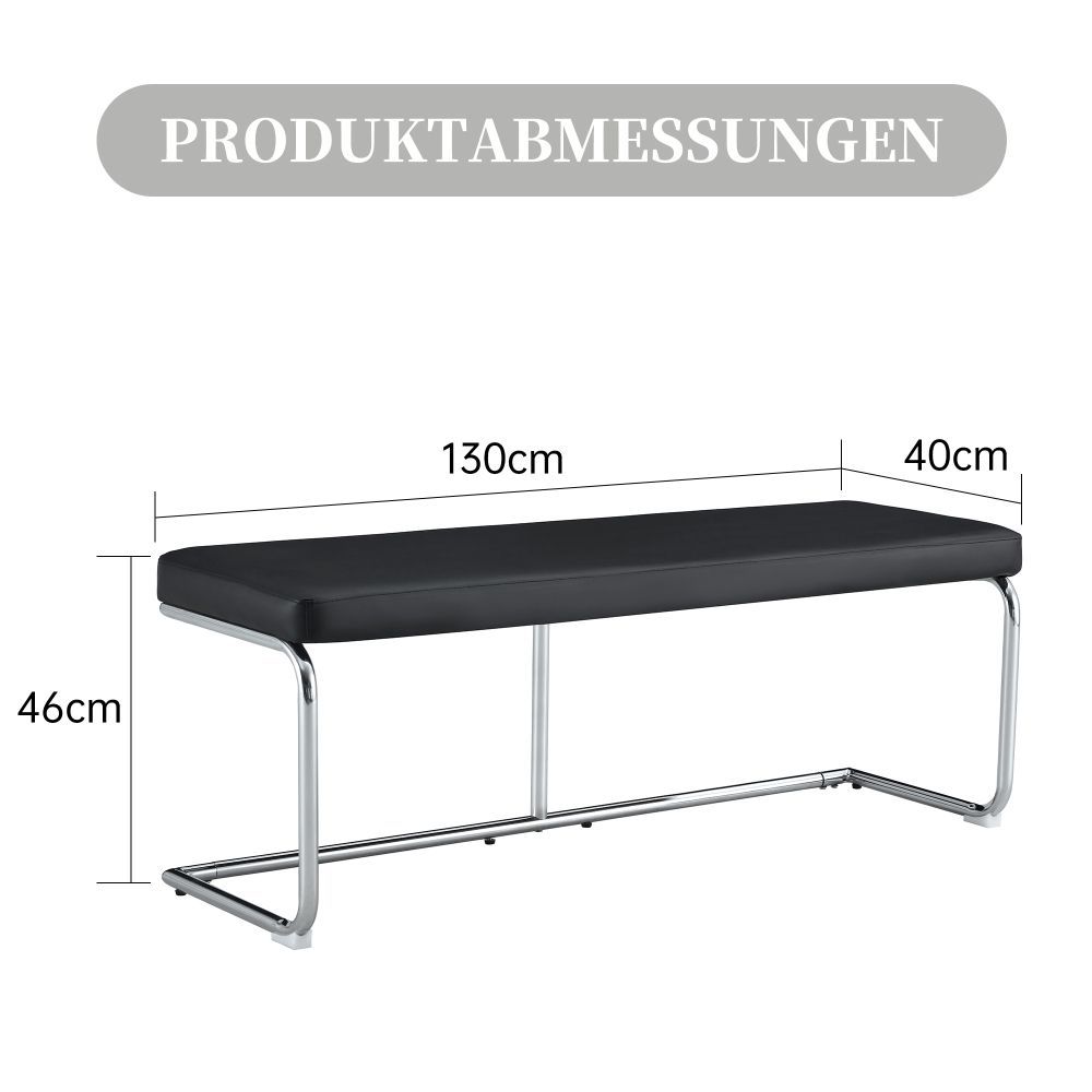Lederbank 130x40x46 cm mit verchromtem Gestell Sitzbank für Flur Wohnzimmer