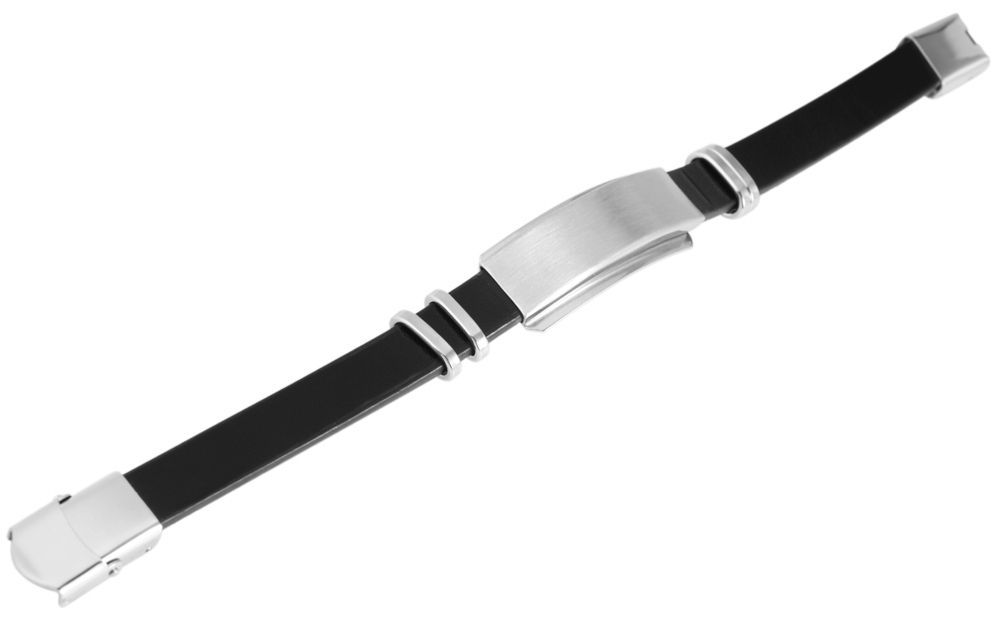 Lederbarmband schwarz Edelstahl Gravurplatte schwarz