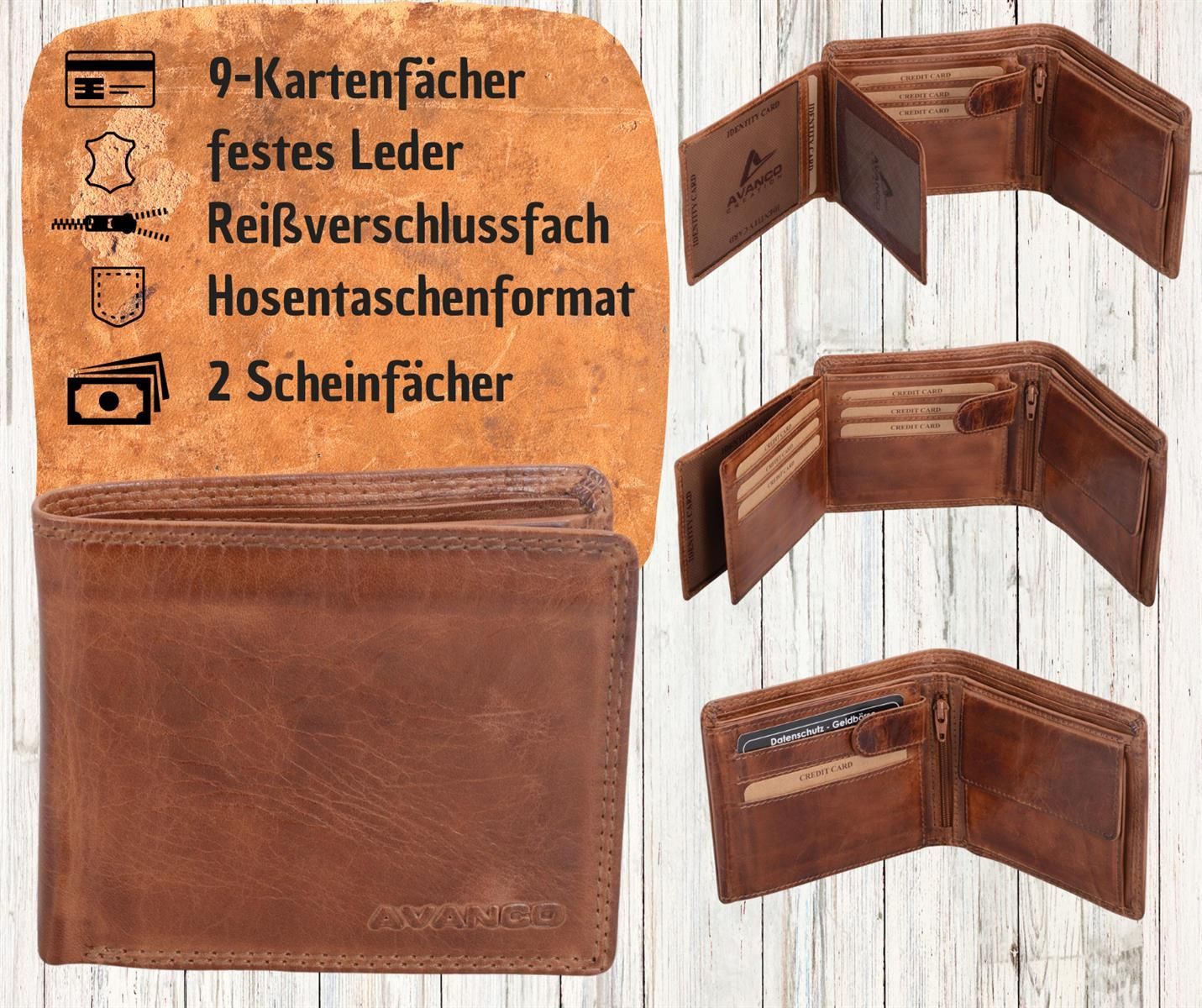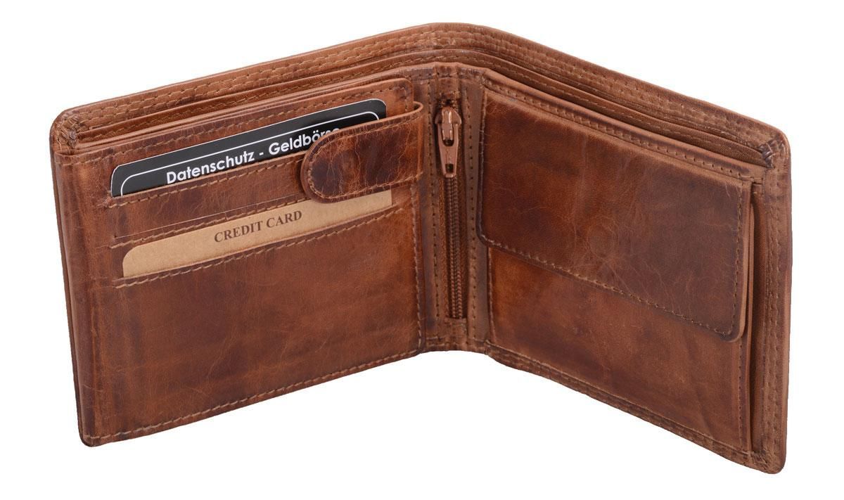 Lederbörse braun Scheintasche Klappen 9 Kartenfächer Herrenbörse echt Leder