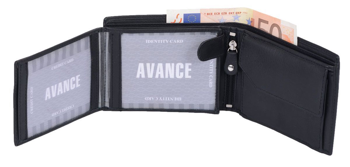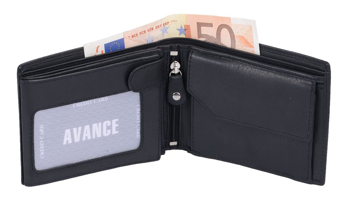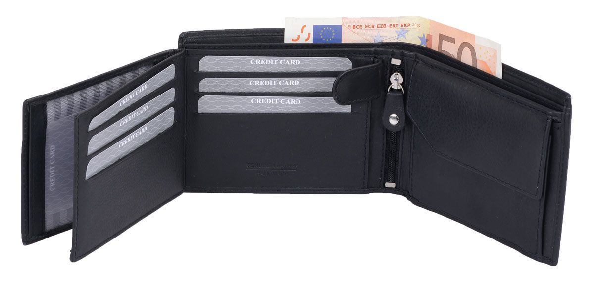 Ledergeldbörse mit Reißverschlussfach, schwarz