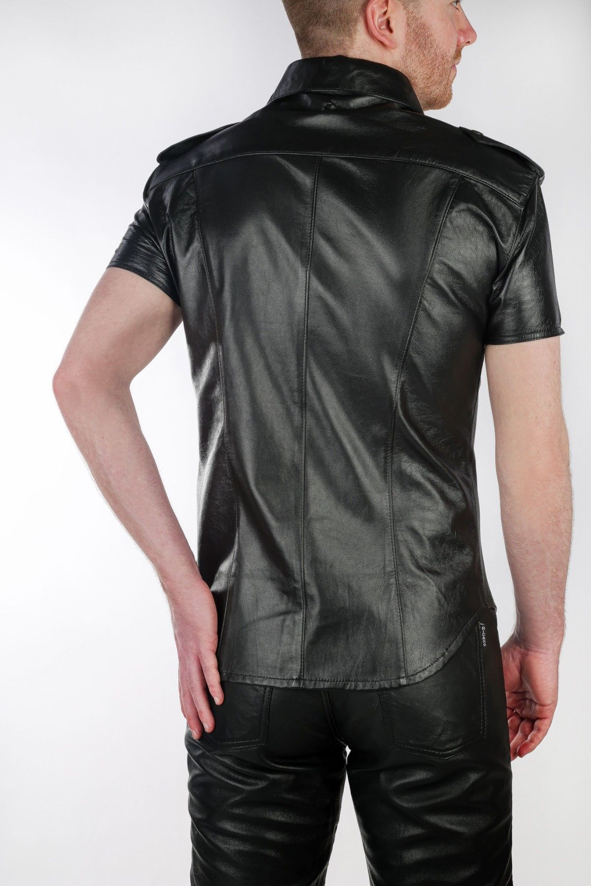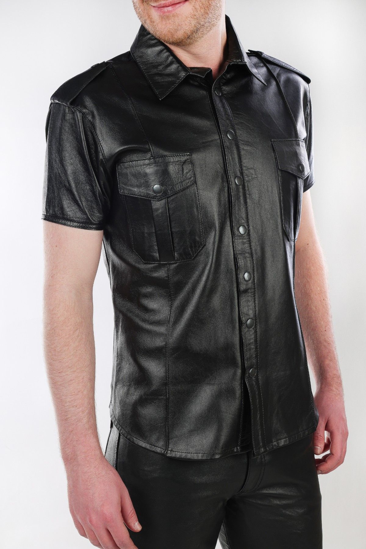 Lederhemd, Hemd Police, echtes Lammnappa Leder in schwarz