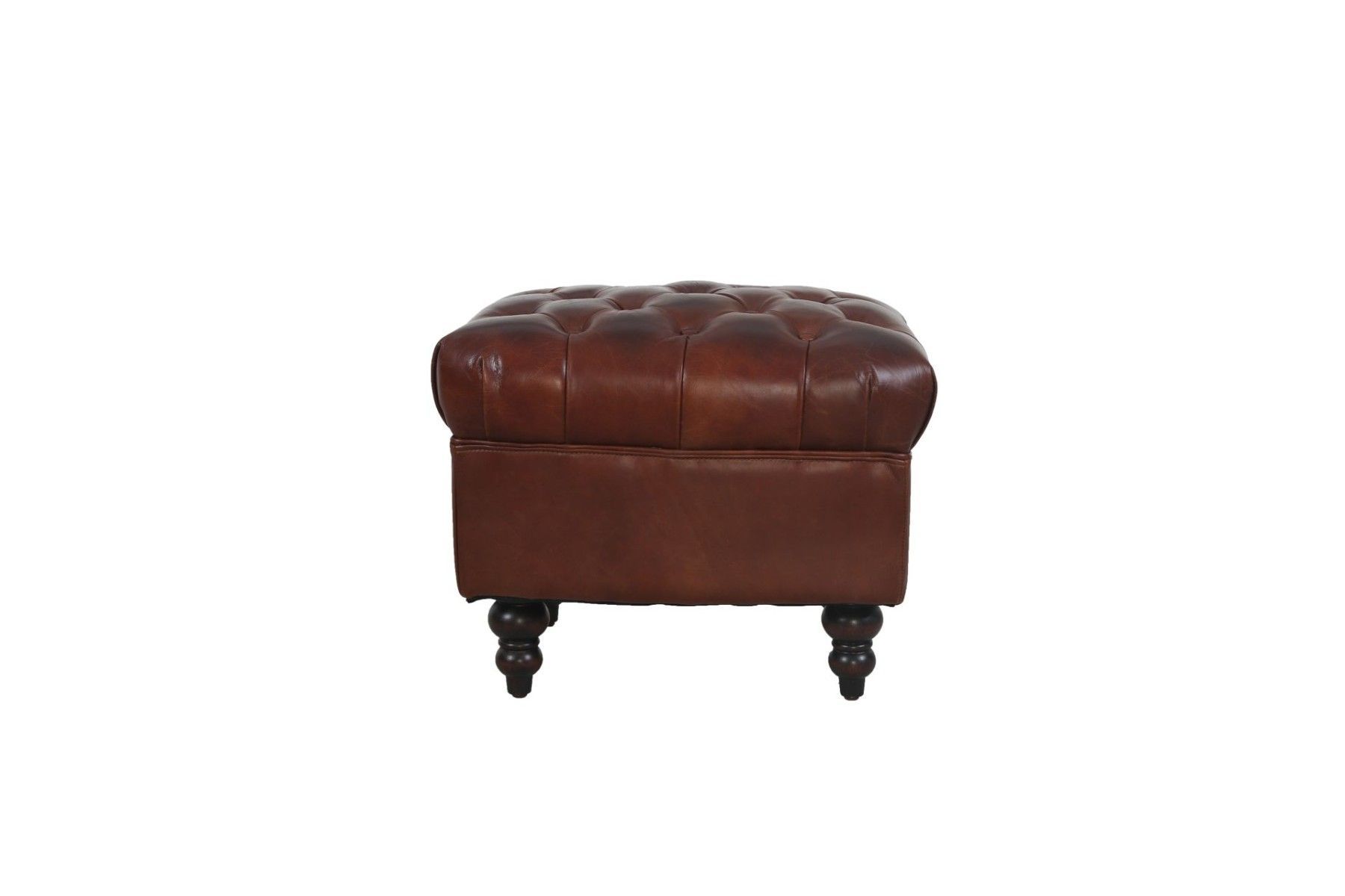 Lederhocker Dover im Chesterfield-Look Vintage Cigar