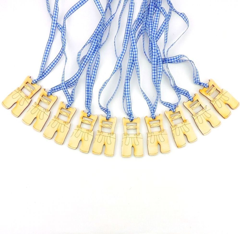 Lederhose mit blauem Band Wiesenfest Volksfest Geburtstag Holz 10 Stück 6 cm