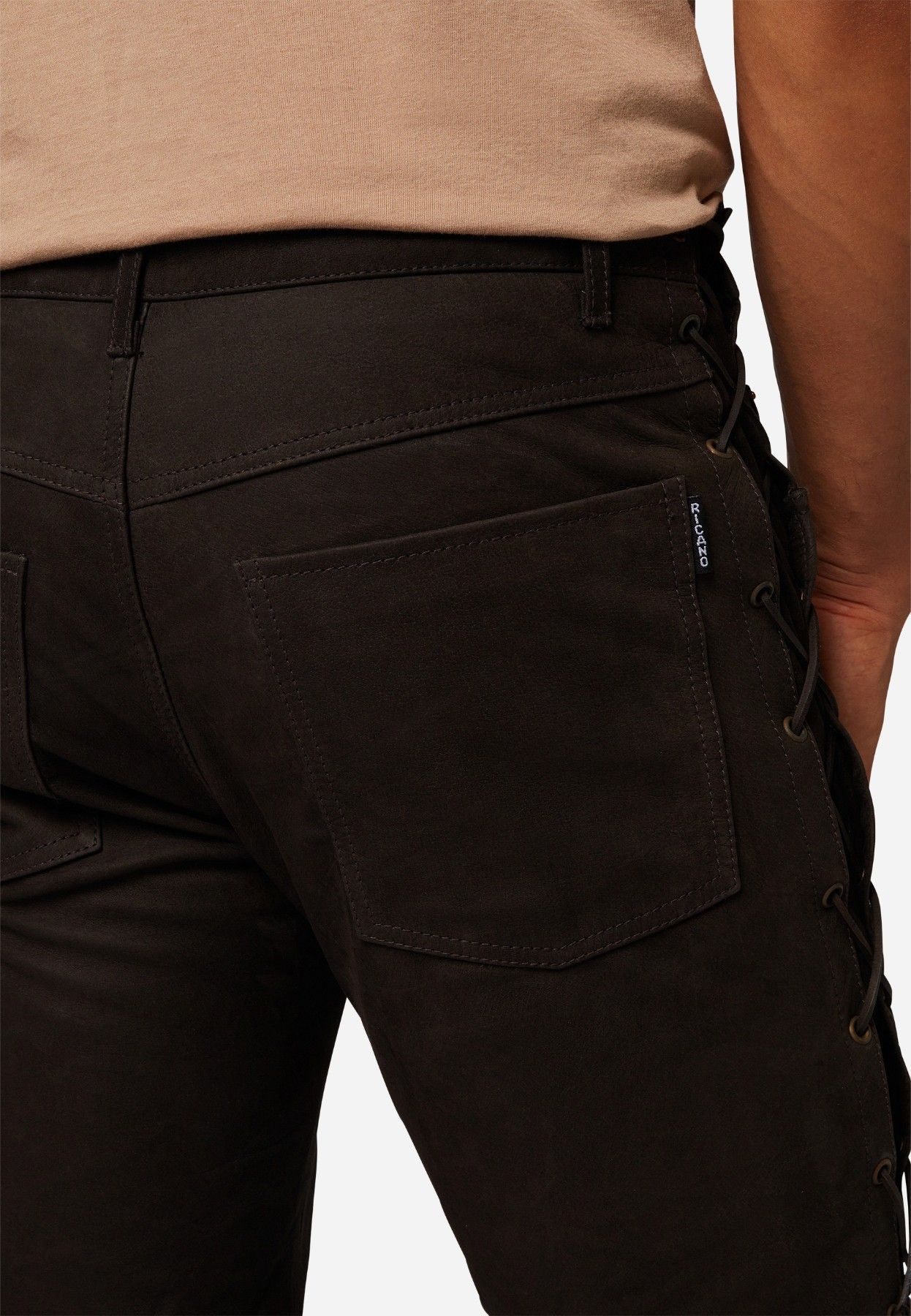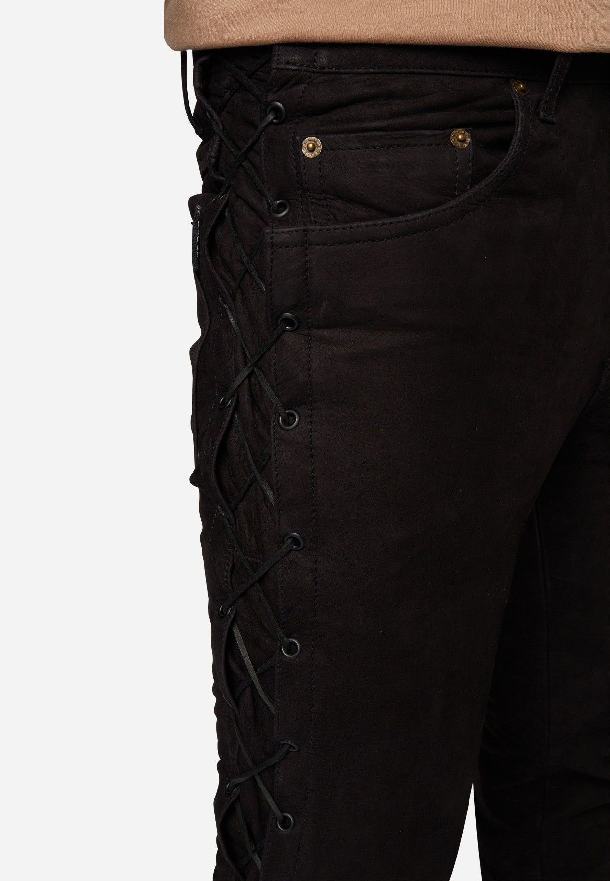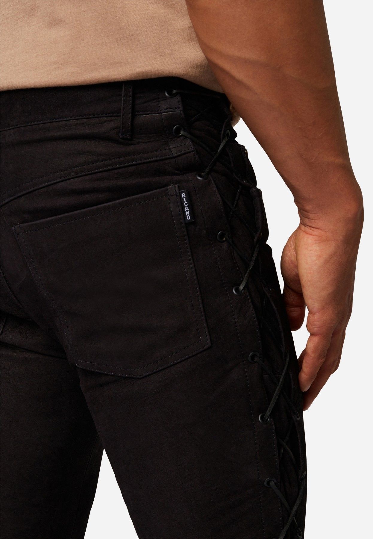 Ricano Lederhose, Schnürhose, Bikerhose Buff.- Nubuk Leder schwarz