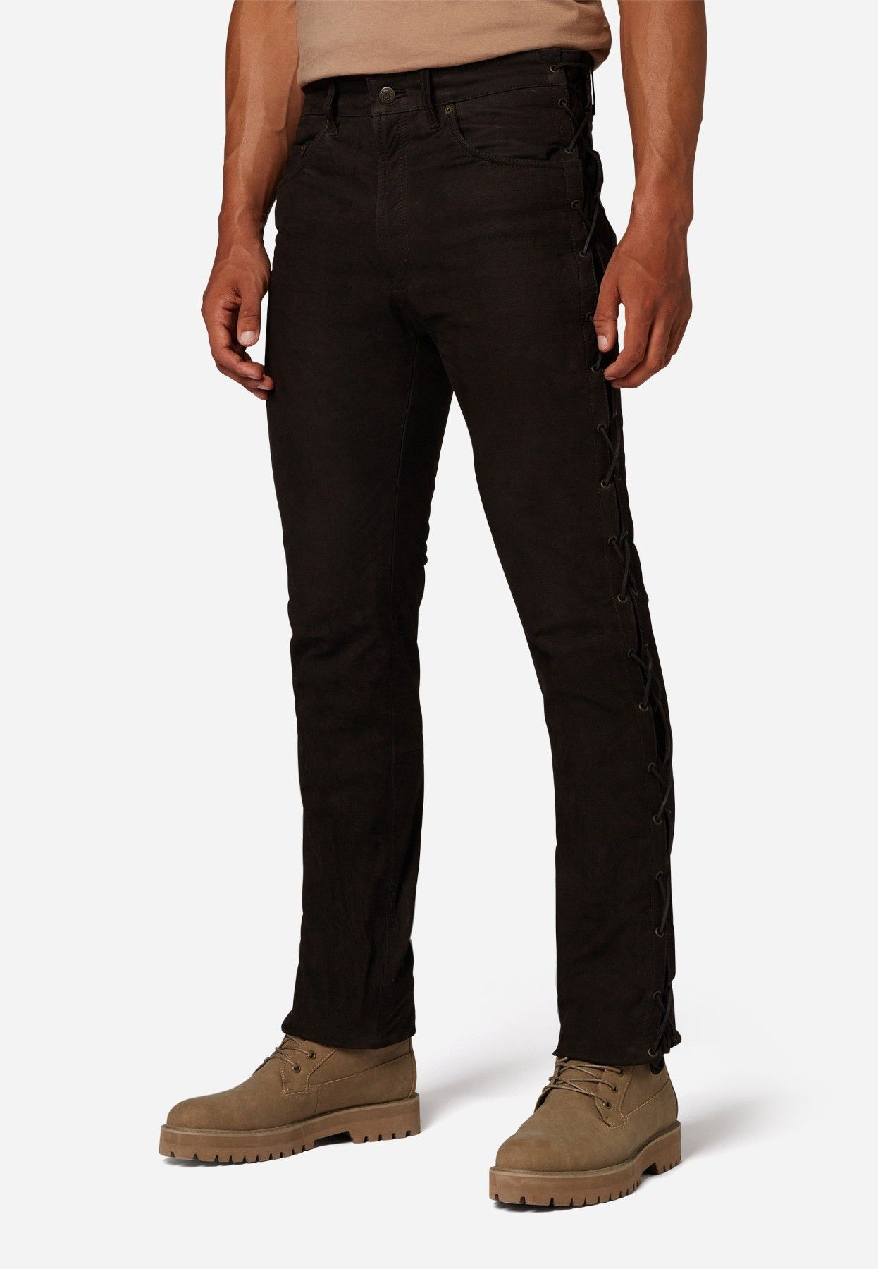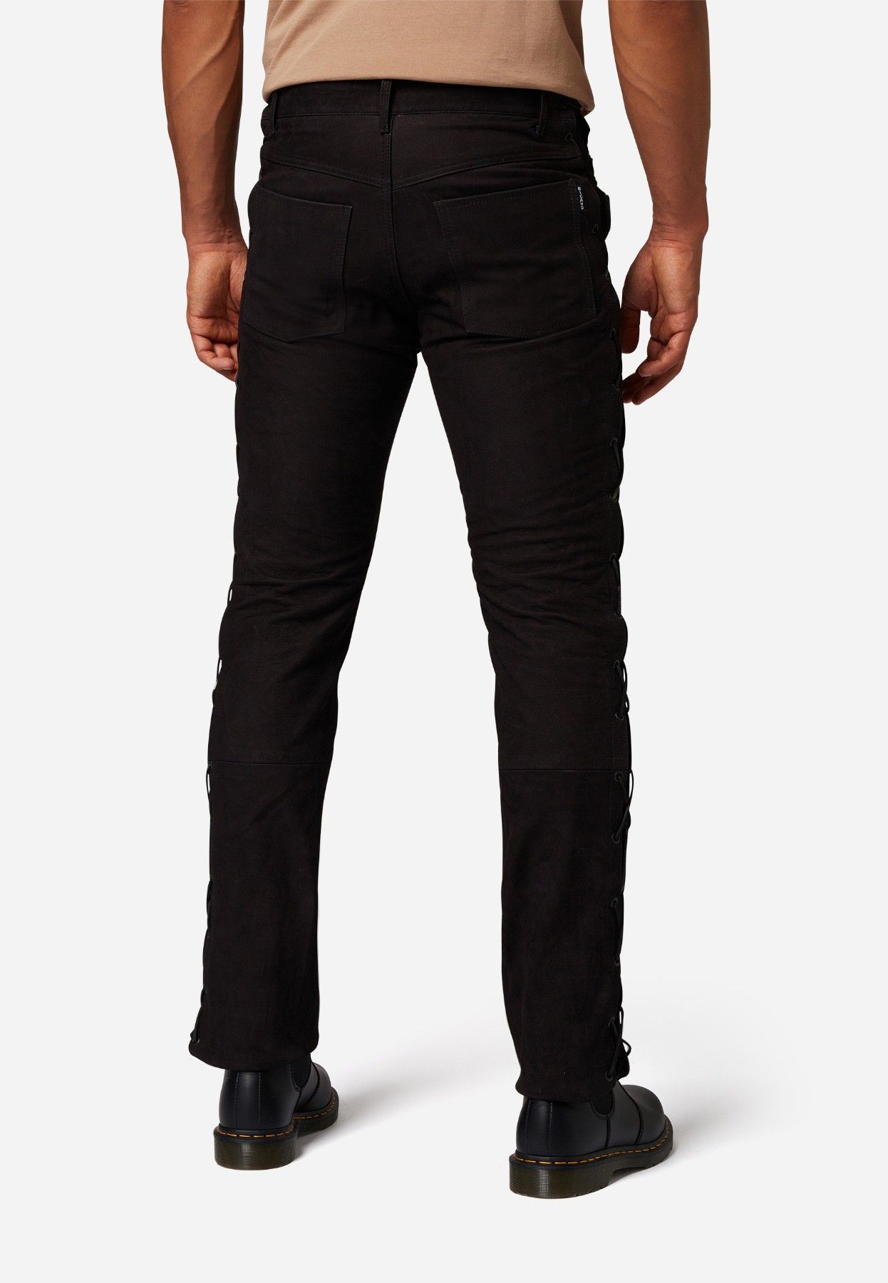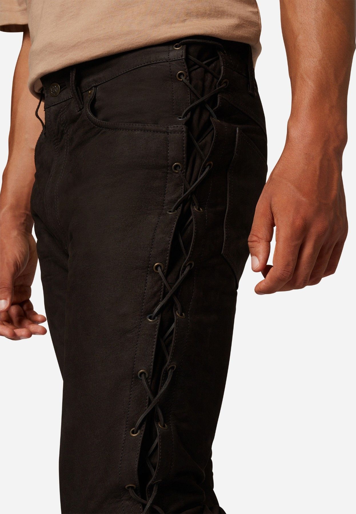 Ricano Lederhose, Schnürhose, Bikerhose Buff.- Nubuk Leder schwarz