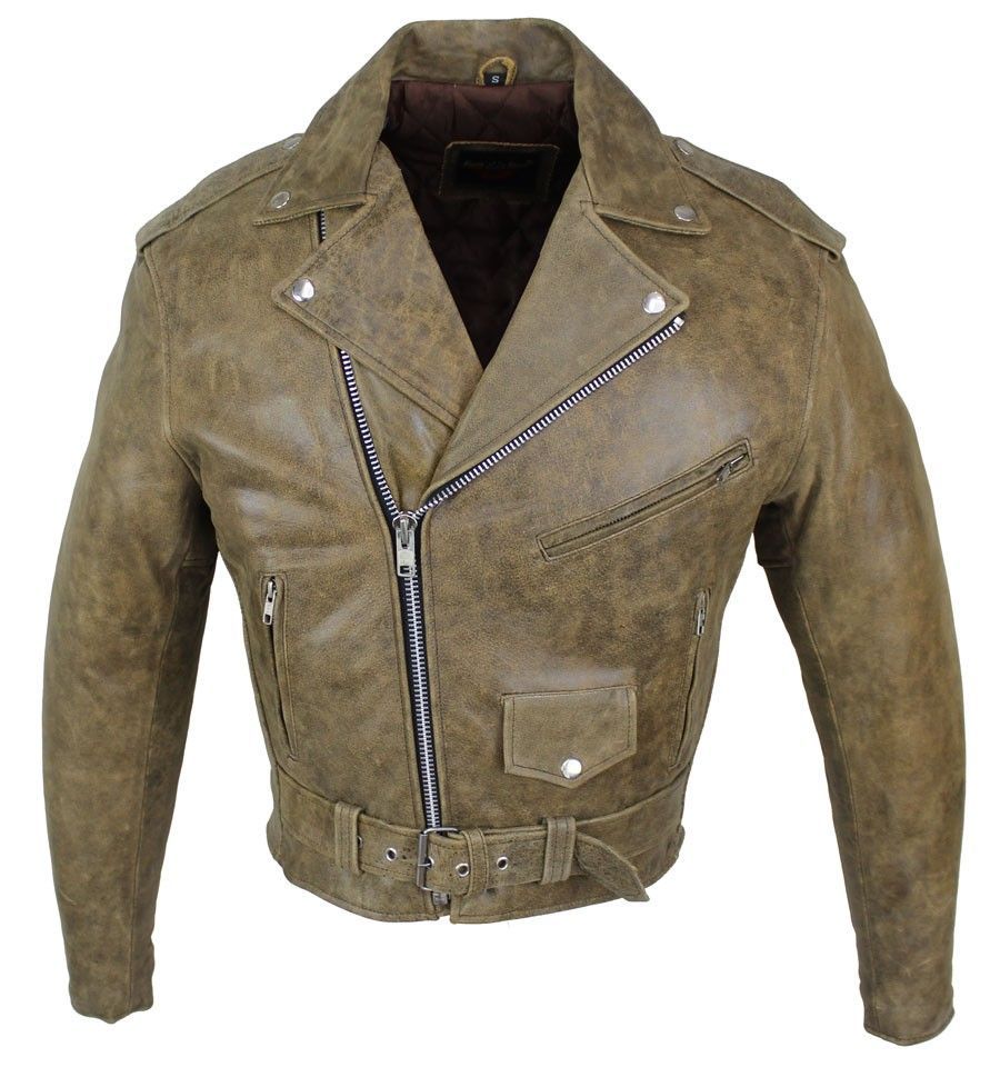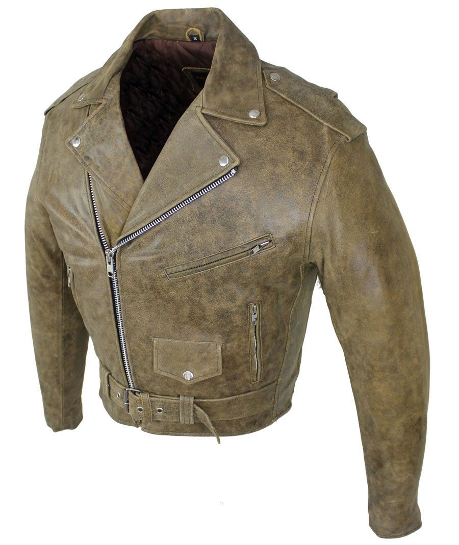 Lederjacke Freizeit Motorrad Jacke Biker Jacke Classic Highway Cracker Braun