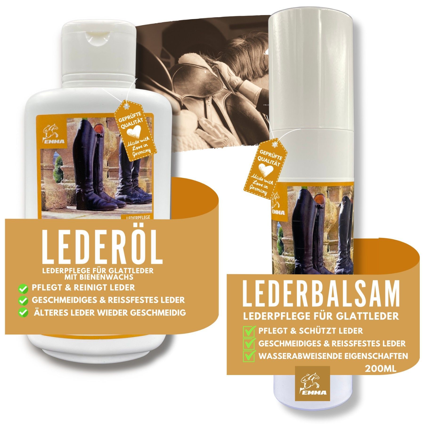 Lederpflege Set Lederöl Bienenwachs + Lederbalsam I Sparset 200ml + 500ml