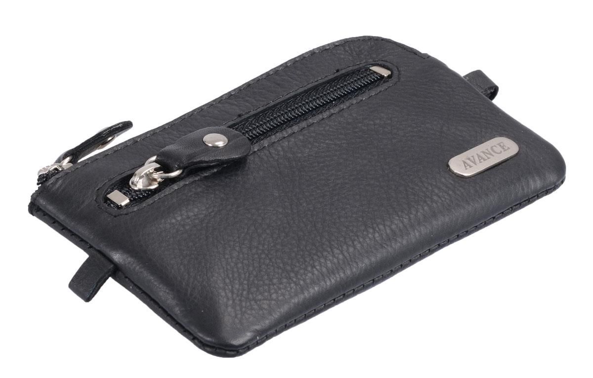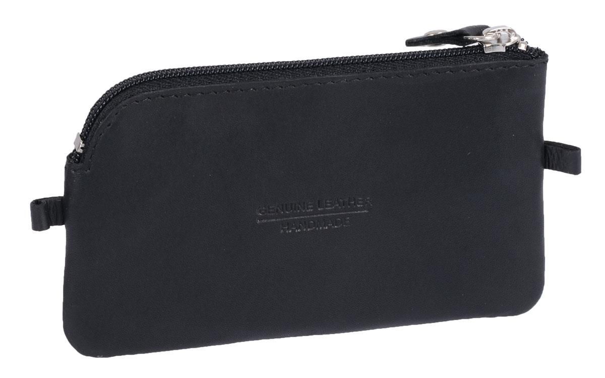 Lederschlüssseltasche mit 2 Ringen, schwarz