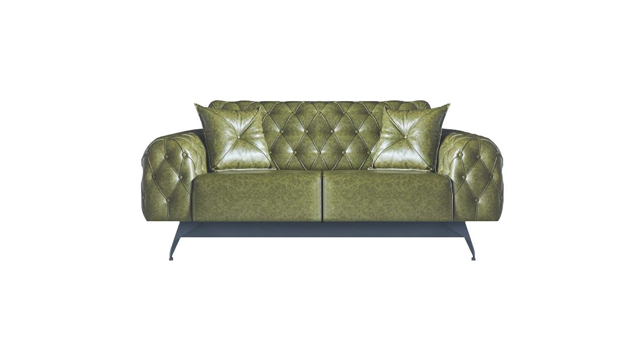 Ledersofa 2-Sitzer Sofa Grün Polster Klassisch Kissen Chesterfield Sofa
