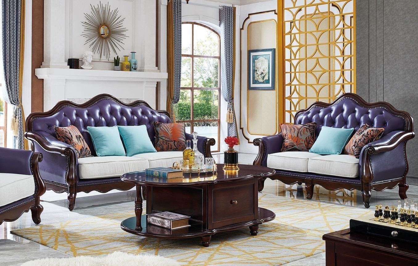 Ledersofa Chesterfield Lila Couch Klassische Sofagarnitur Couchen Set Garnituren