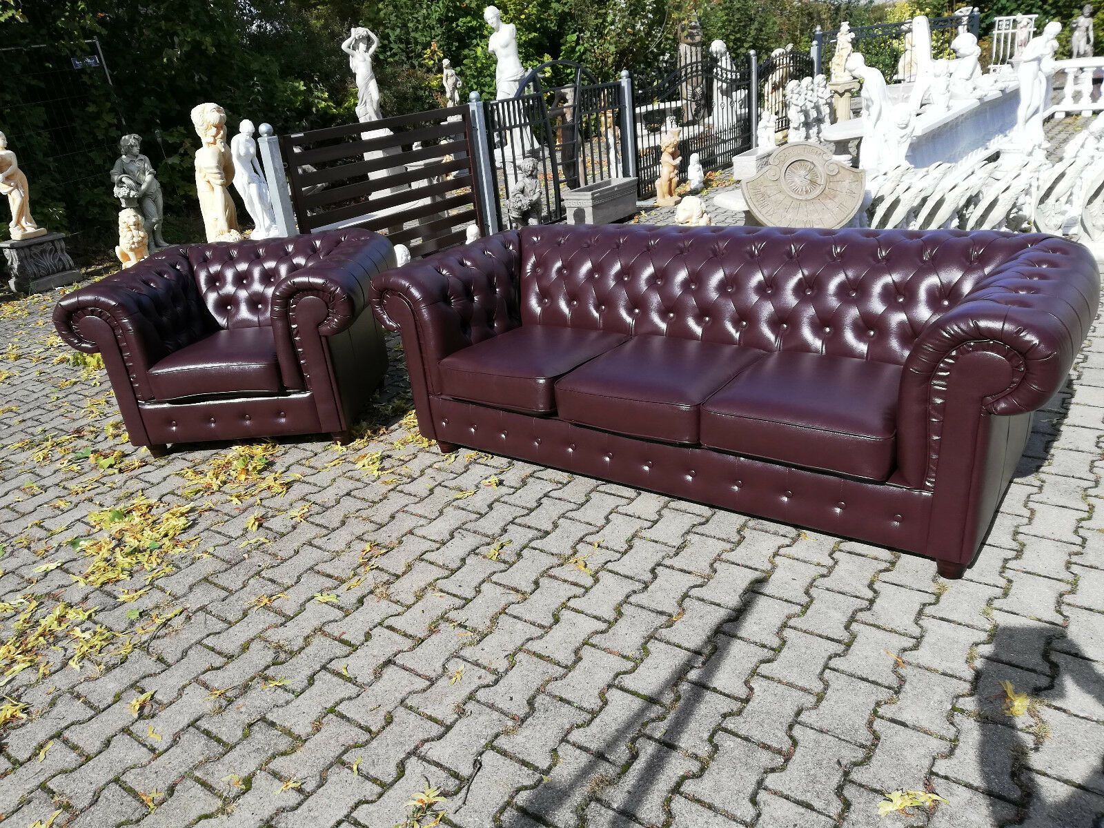 • Chesterfield Ledersofa Sofagarnitur Komplette Sofa Couch Garnitur Ledersofa Neu