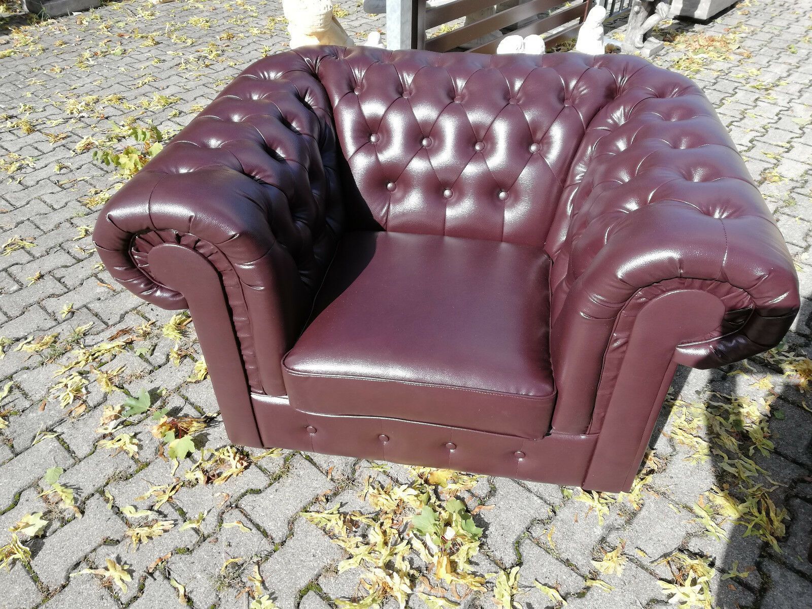 • Dunkelrote Chesterfield Couch Wohnzimmer Ledersofa Stilvolle Sitzmöbel
