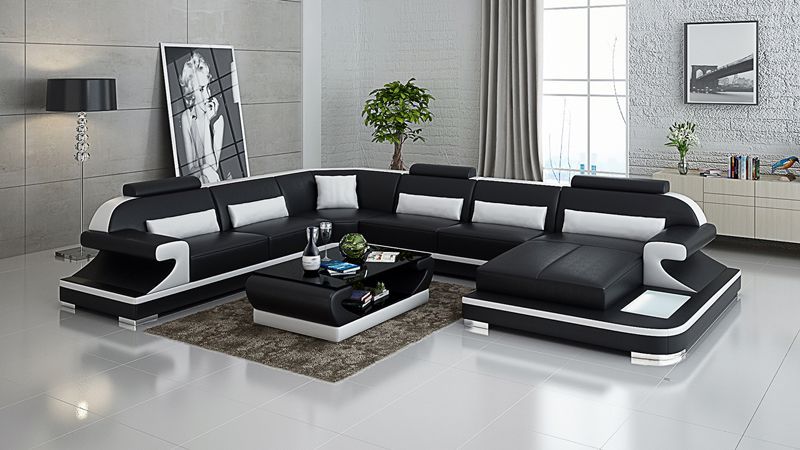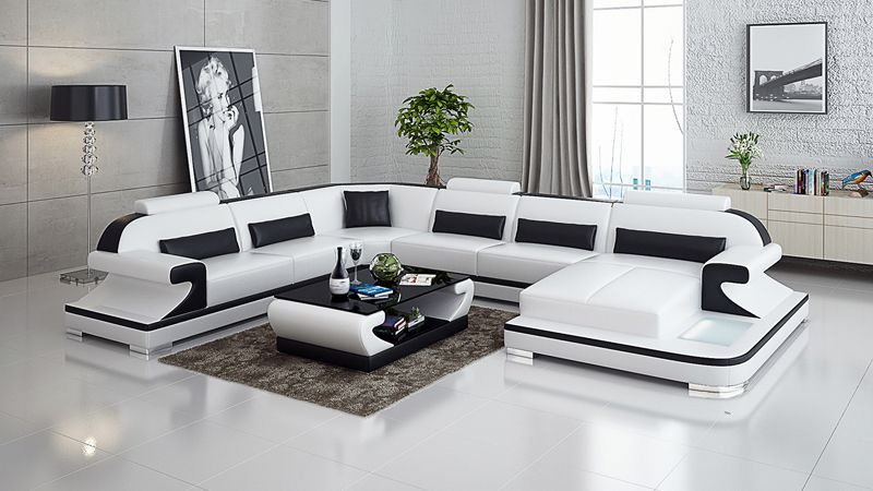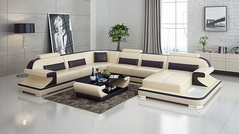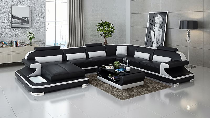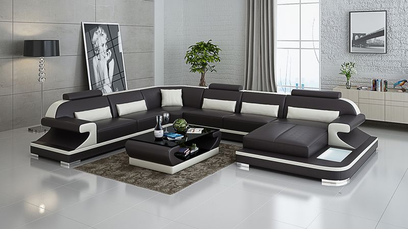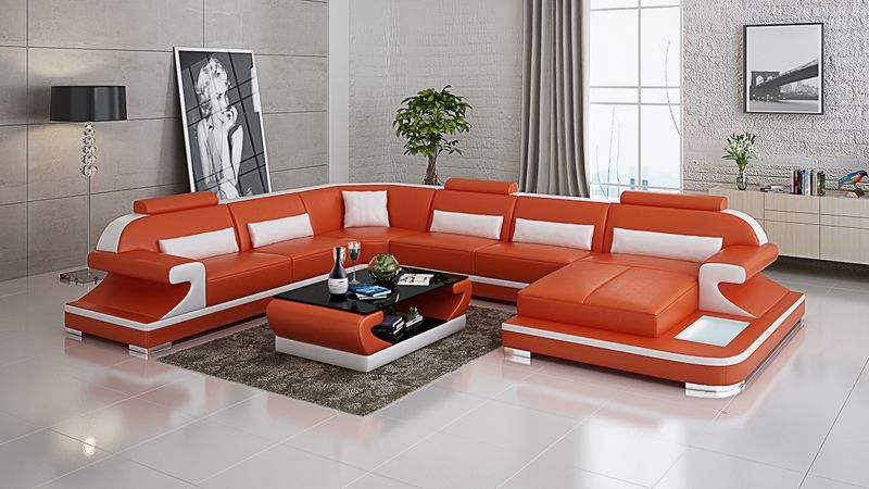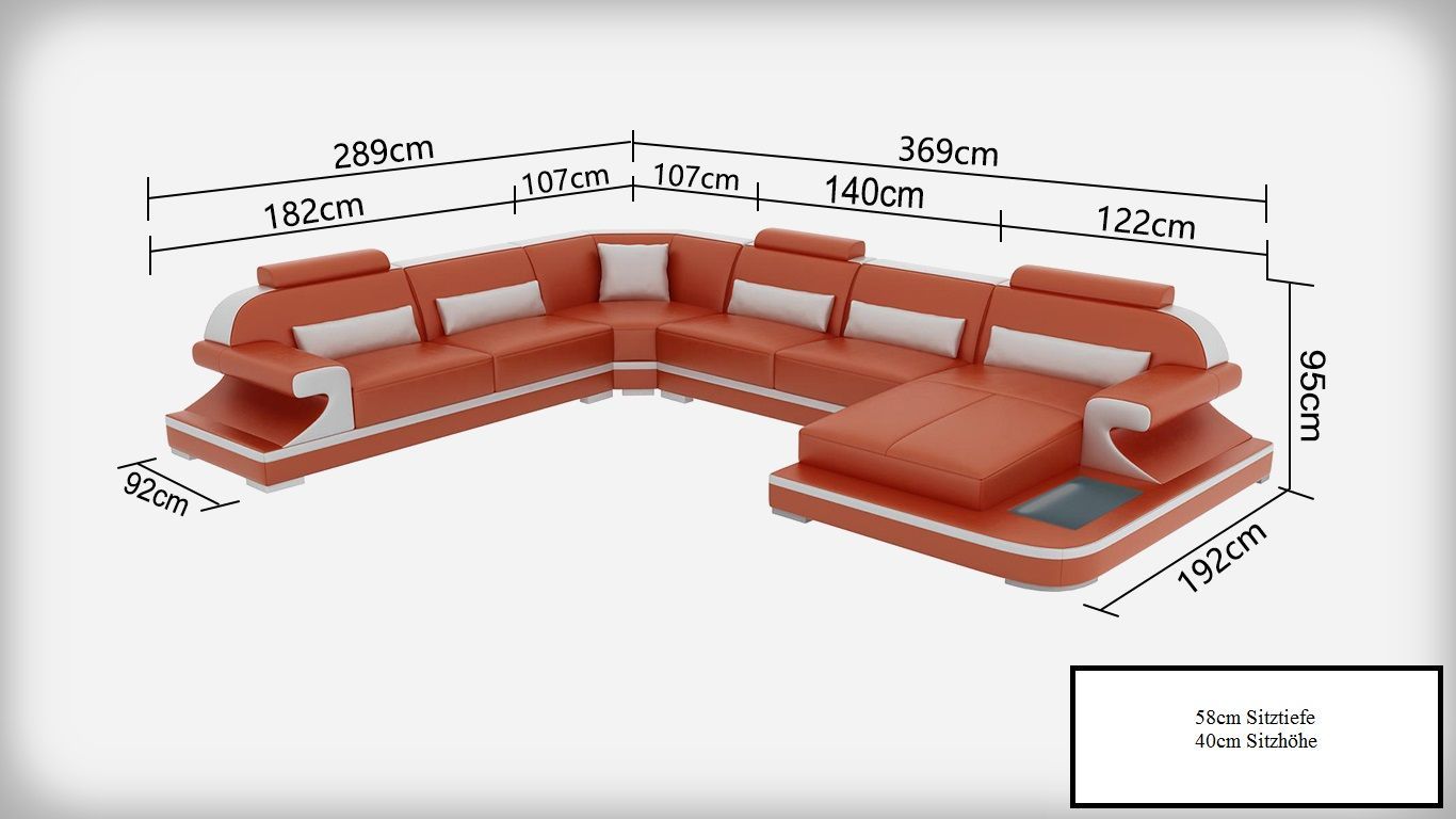 Ledersofa Couch Wohnlandschaft Ecksofa Eck Garnitur Design Modern Sofa mit USB