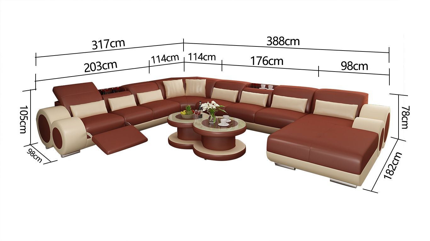 Ledersofa Couch Wohnlandschaft Ecksofa Eck Garnitur Design Modern Sofa mit USB