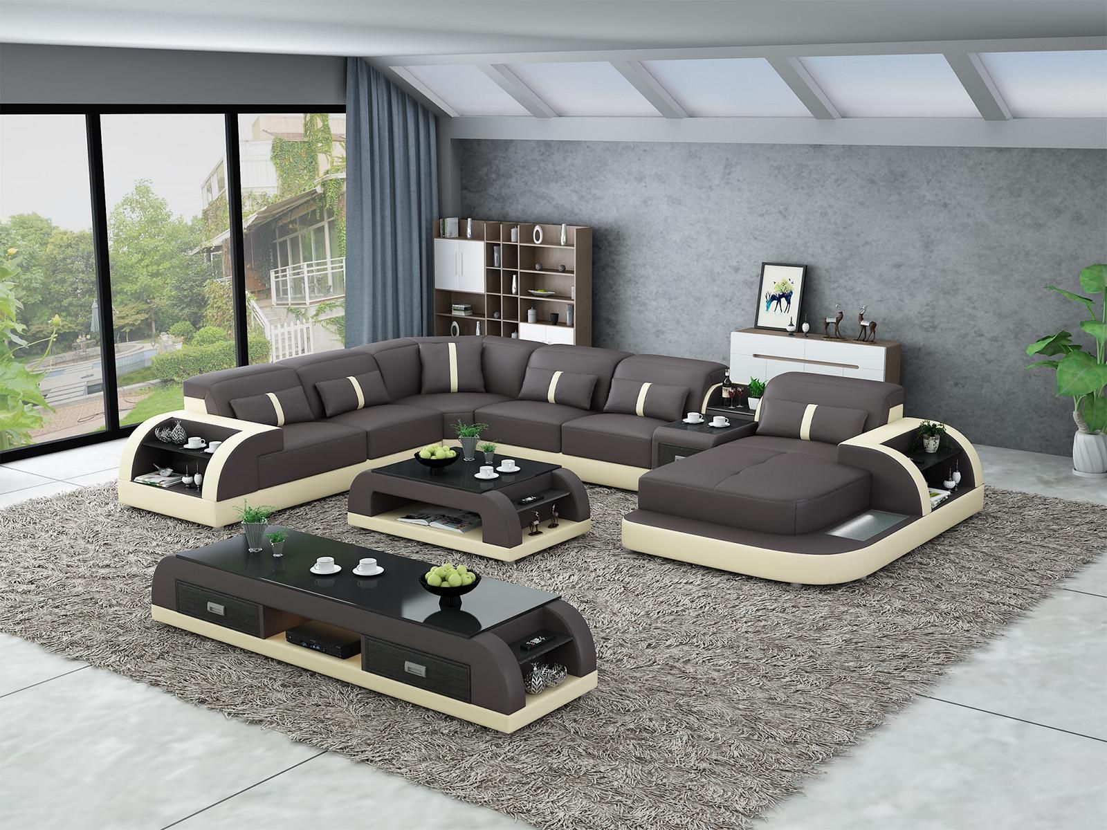 Ledersofa Design Eckgarnitur Ecksofa Luxus Wohnlandschaft led sofa couch Polster