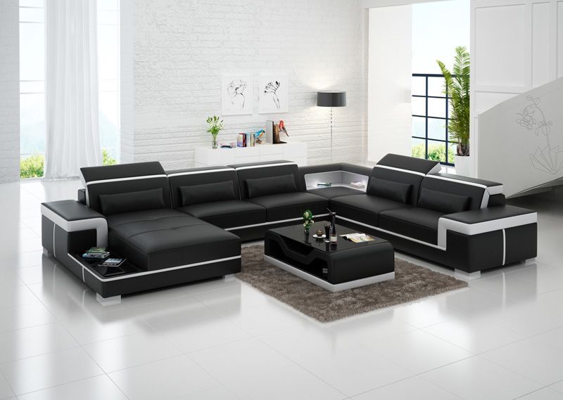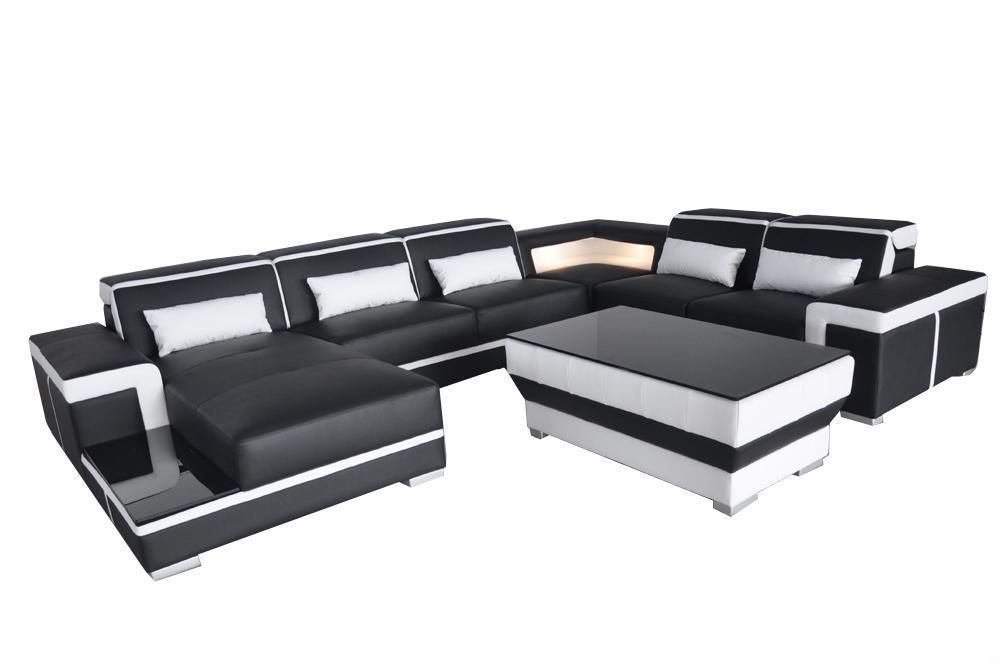 Ledersofa Ecksofa Wohnlandschaft Couch Eckgarnitur Polster Sitzecke + Tisch + USB