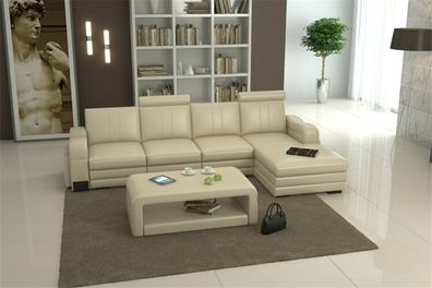 Ledersofa Eckgarnitur Ecksofa L Form Sofa Couch Beige Luxus Design