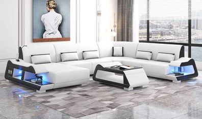 Ledersofa Sofa mit USB Couch Designersofa U Form Eckgarnitur Polsterecke Big neu