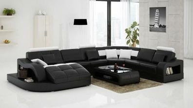 Groß Ecksofa Wohnlandschaft XXL Sofa U Form Ledersofa Schwarz Sofas